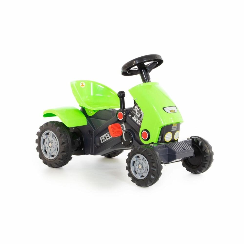 Чудовий подарунок для дитини від 3 років. Дитині варто лише почати крутити педалі - і міні-трактор "Turbo" почне свій рух. За допомогою керма дитина може вибрати напрямок свого руху, а важелі на панелі додають трактору-каталці ще більшої реалістичності, імітуючи коробку передач. Важелі носять чисто декоративний характер. Механізм приводиться в рух за допомогою ланцюга. Висота посадки – 300 мм. Їзда на каталці з педалями, як і їзда на велосипеді, розвивають первісні рухи та сприйняття, загальну координацію рухів, сприяють фізичному розвитку.