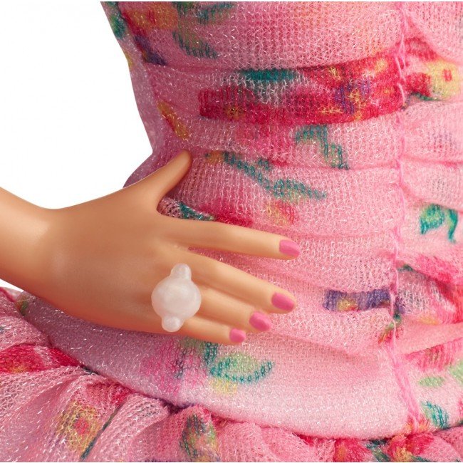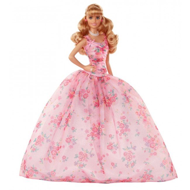 З днем народження! От і прийшов твій особливий день та лялька Barbie із задоволенням розділить з тобою радість від святкування. Вона одягнула свою найкращу сукню з прекрасними квітами, а також доповнила свій образ витонченими прикрасами, що роблять образ ідеальним для дня народження. Сережки-троянди, намисто та перстень з перлин додають певну святковість образу. На упаковці є спеціальне місце, де ви можете написати свої привітання та побажання, роблячи колекційну ляльку Barbie "Особливий День народження" ідеальним подарунком. Нехай вона надихає вас на здійснення мрій. Кольори та декорації можуть несуттєво відрізнятись від зображених на упаковці.