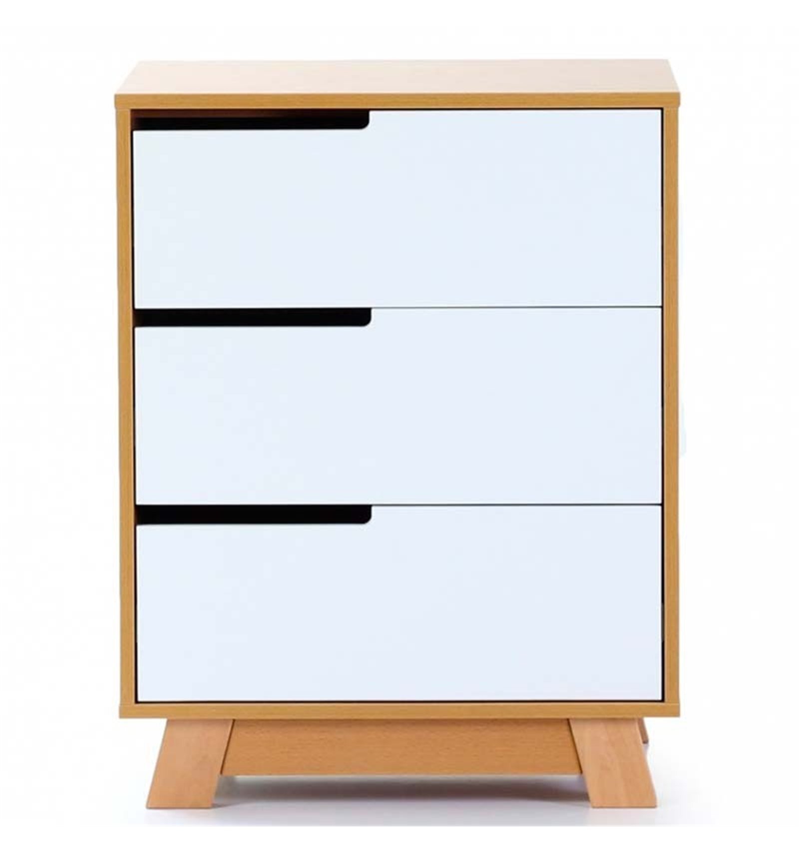 Комод має 3 висувних ящики для білизни. Поставляється в зібраному вигляді. Є можливість установки пеленального блоку, що знімається (докуповується окремо). Телескопічні направляючі, з високим ступенем навантаження. Верхня частина комода і обмежувальні стінки не мають гострих кутів.