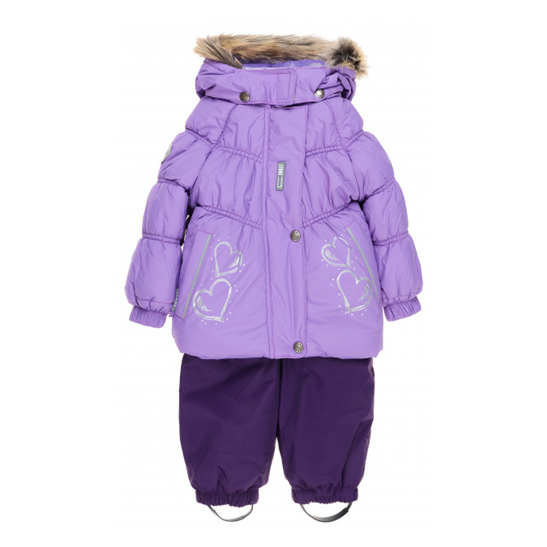 Теплий зимовий комплект для дівчат 3-4 років від відомого естонського бренду Lenne. Комплект складається з куртки та напівкомбінезону. Куртка має теплий, оздоблений хутром капюшон, що від’єднується, застібається за допомогою липучок. Від вітру шию дитини прикриває приємний на дотик велюровий комірець. З велюру зроблена і підкладка в капюшоні. На талії, по низу рукавів та штанів є вшита резинка. Куртка має 2 вшиті кишені. Напівкомбінезон має підтяжки, довжина яких регулюється. Внизу на штанах - штрипки для взуття. Є світловідбивальні елементи. Всі моделі "Ленне" практичні в експлуатації та легкі в догляді, тому що пошиті з високотехнологічної тканини Active. Це поліамідний матеріал з повітропроникною, брудо- та водовідштовхувальною здатністю. Зимовий комплект утеплений IsoSoft. Теплоізолювальна структура складається з безлічі найтонших волокон, завдяки яким виріб має чудові теплозахисні властивості. Попри тонкість, утеплювач надзвичайно теплий та зносостійкий. Верхній одяг з ізософт - легкий, м'який, компактний та комфортний. Комплект розрахований на зріст 98 см. Колір - бузковий, фіолетовий. Принт - сердечко.