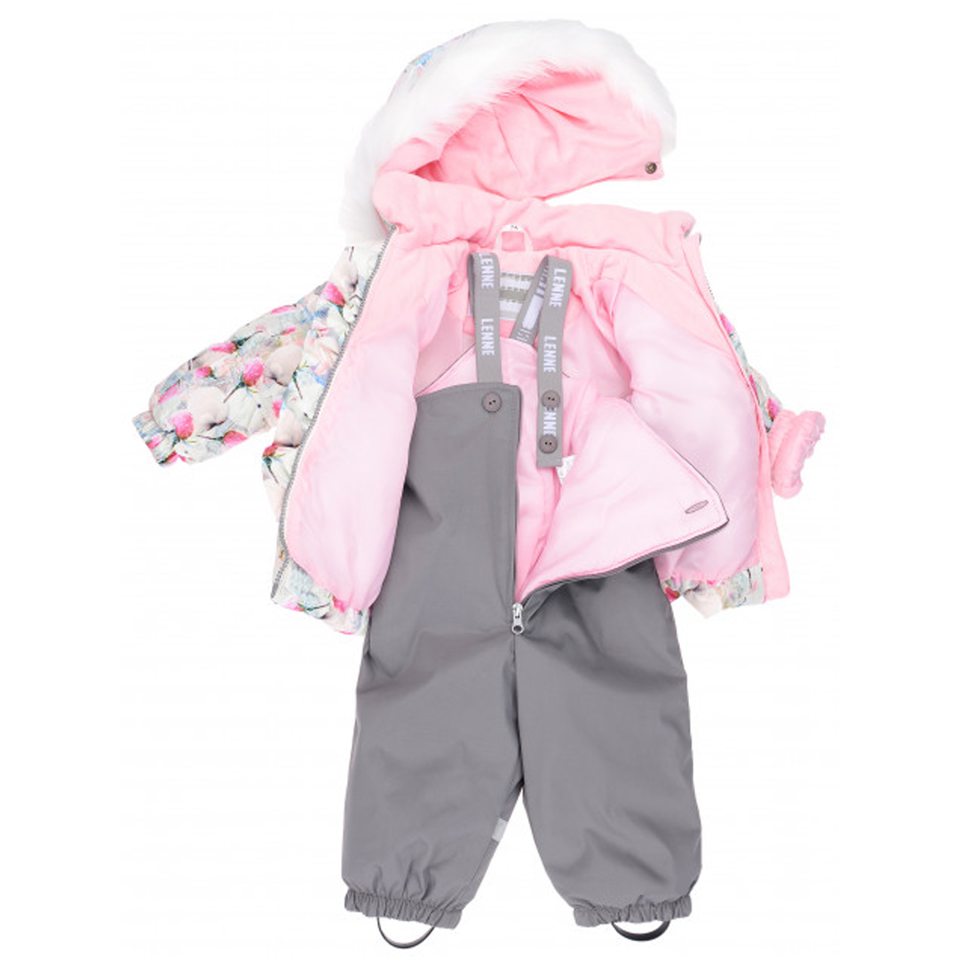 Теплий зимовий комплект для дівчат 3-4 років від відомого естонського бренду Lenne. Комплект складається з куртки та напівкомбінезону. Куртка має теплий, оздоблений хутром капюшон, що від’єднується, застібається за допомогою липучок. Від вітру шию дитини прикриває приємний на дотик велюровий комірець. З велюру зроблена і підкладка в капюшоні. На талії, по низу рукавів та штанів є вшита резинка. Куртка має 2 вшиті кишені. Напівкомбінезон має підтяжки, довжина яких регулюється. Внизу на штанах - штрипки для взуття. Є світловідбивальні елементи. Всі моделі "Ленне" практичні в експлуатації та легкі в догляді, тому що пошиті з високотехнологічної тканини Active. Це поліамідний матеріал з повітропроникною, брудо- та водовідштовхувальною здатністю. Зимовий комплект утеплений IsoSoft. Теплоізолювальна структура складається з безлічі найтонших волокон, завдяки яким виріб має чудові теплозахисні властивості. Попри тонкість, утеплювач надзвичайно теплий та зносостійкий. Верхній одяг з ізософт - легкий, м'який, компактний та комфортний. Комплект розрахований на зріст 98 см. Колір - білий, сірий. Принт - бутони троянд, білі кролики.