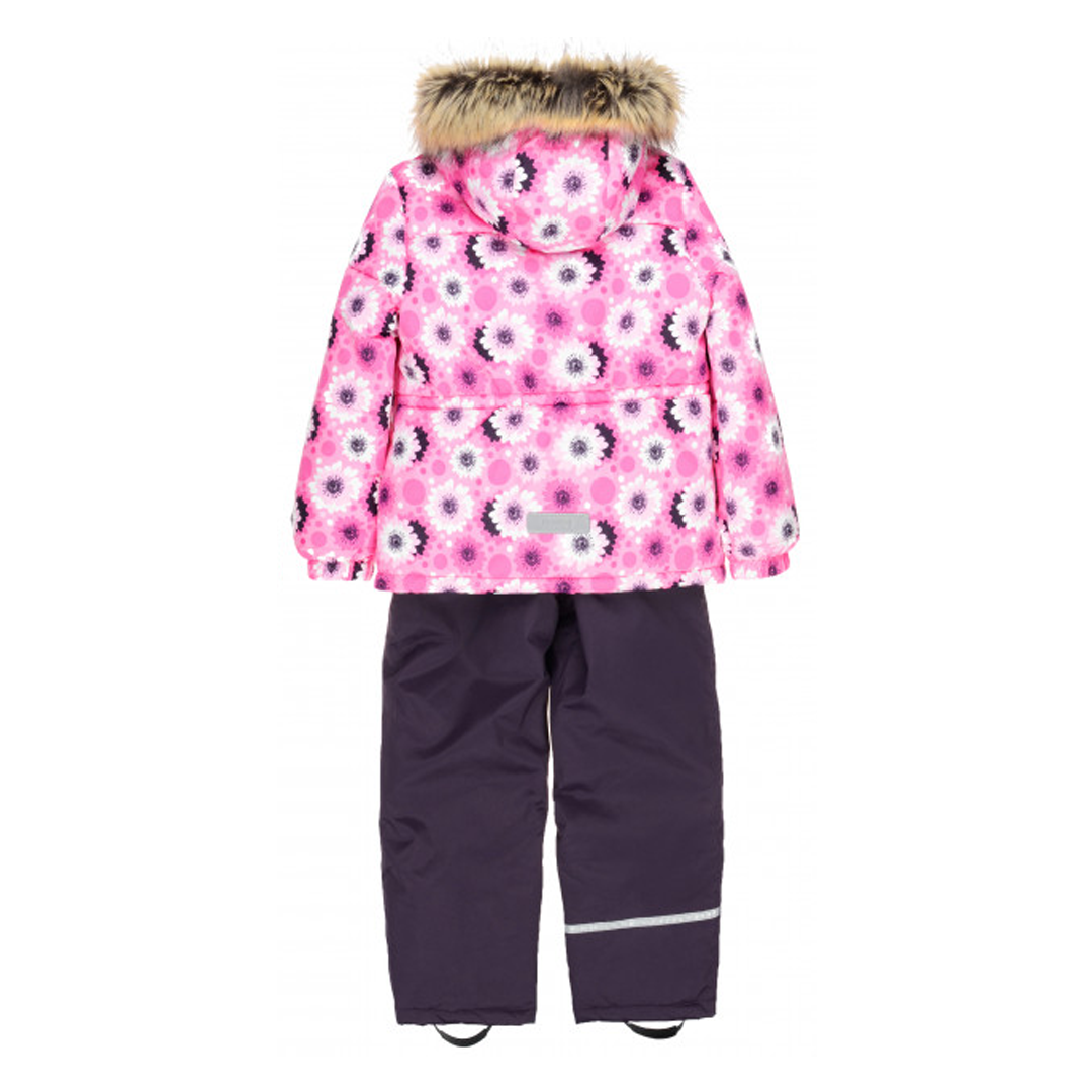 Теплий зимовий комплект для дівчат 4-х років від відомого естонського бренду Lenne. Комплект складається з рожевої куртки та темно-фіолетового напівкомбінезону. Куртка має теплий, оздоблений хутром капюшон, що від’єднується, застібається за допомогою липучок. Від вітру шию дитини прикриває приємний на дотик велюровий комірець. З велюру зроблена і підкладка в капюшоні. На талії, по низу рукавів та штанів є вшита резинка. Куртка має 2 вшиті кишені. Напівкомбінезон має підтяжки, довжина яких регулюється. Внизу на штанах - штрипки для взуття. Є світловідбивальні елементи. Всі моделі "Ленне" практичні в експлуатації та легкі в догляді, тому що пошиті з високотехнологічної тканини Active. Це поліамідний матеріал з повітропроникною, брудо- та водовідштовхувальною здатністю. Зимовий комплект утеплений IsoSoft. Теплоізолювальна структура складається з безлічі найтонших волокон, завдяки яким виріб має чудові теплозахисні властивості. Попри тонкість, утеплювач надзвичайно теплий та зносостійкий. Верхній одяг з ізософт - легкий, м'який, компактний та комфортний. Комплект розрахований на зріст 104 см. Принт - квіти.