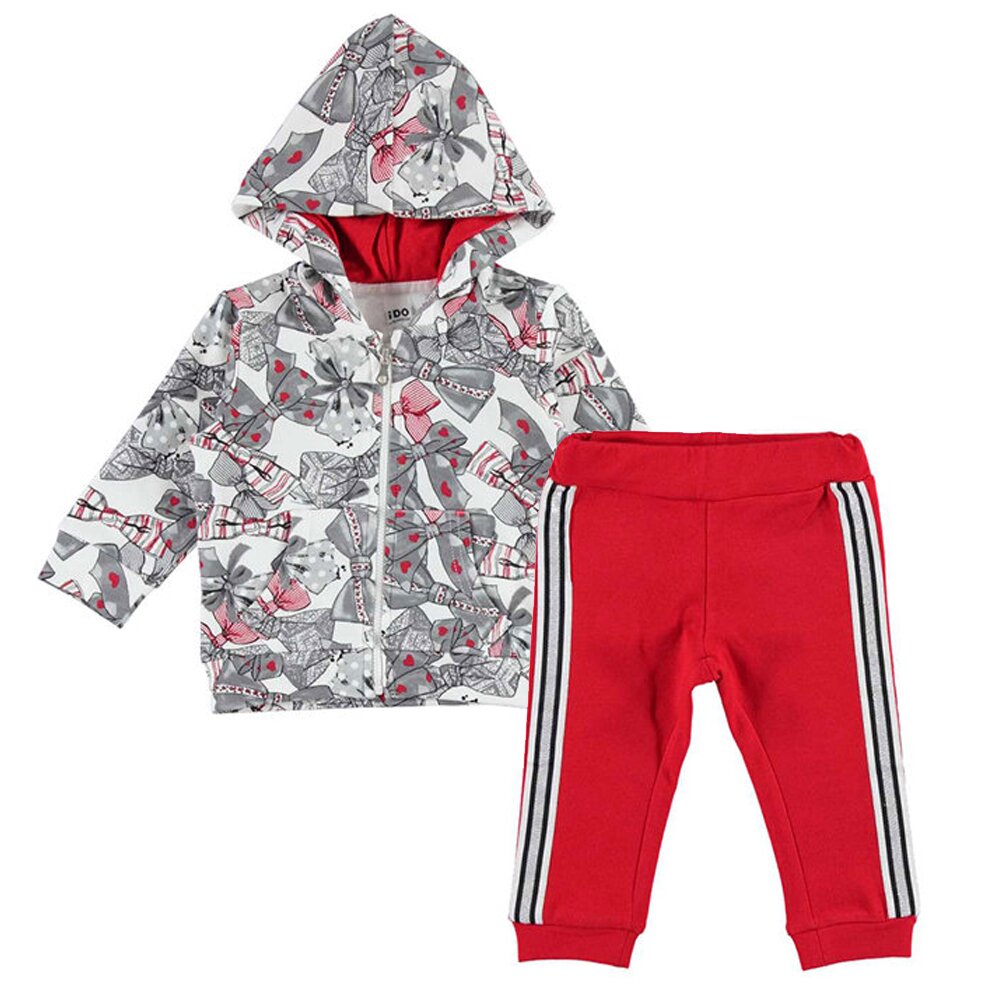 Зручний, модний, стильний трикотажний комплект стане незамінним варіантом Вашій дівчинці для щоденних прогулянок. М'які червоні теплі штани на манжеті, на еластичному поясі з вшитою гумкою. Мають лампаси тих же кольорів, що і кофта. Принтована толстовка з капюшоном застібається спереду на блискавку. Знизу манжети на рукавах і низ на трикотажній гумці. Матеріал - 95% бавовна, 5% еластан. Колір - білий, сірий, червоний. Дитячий одяг бренду iDO - це висока європейська якість і кращі модні тренди.