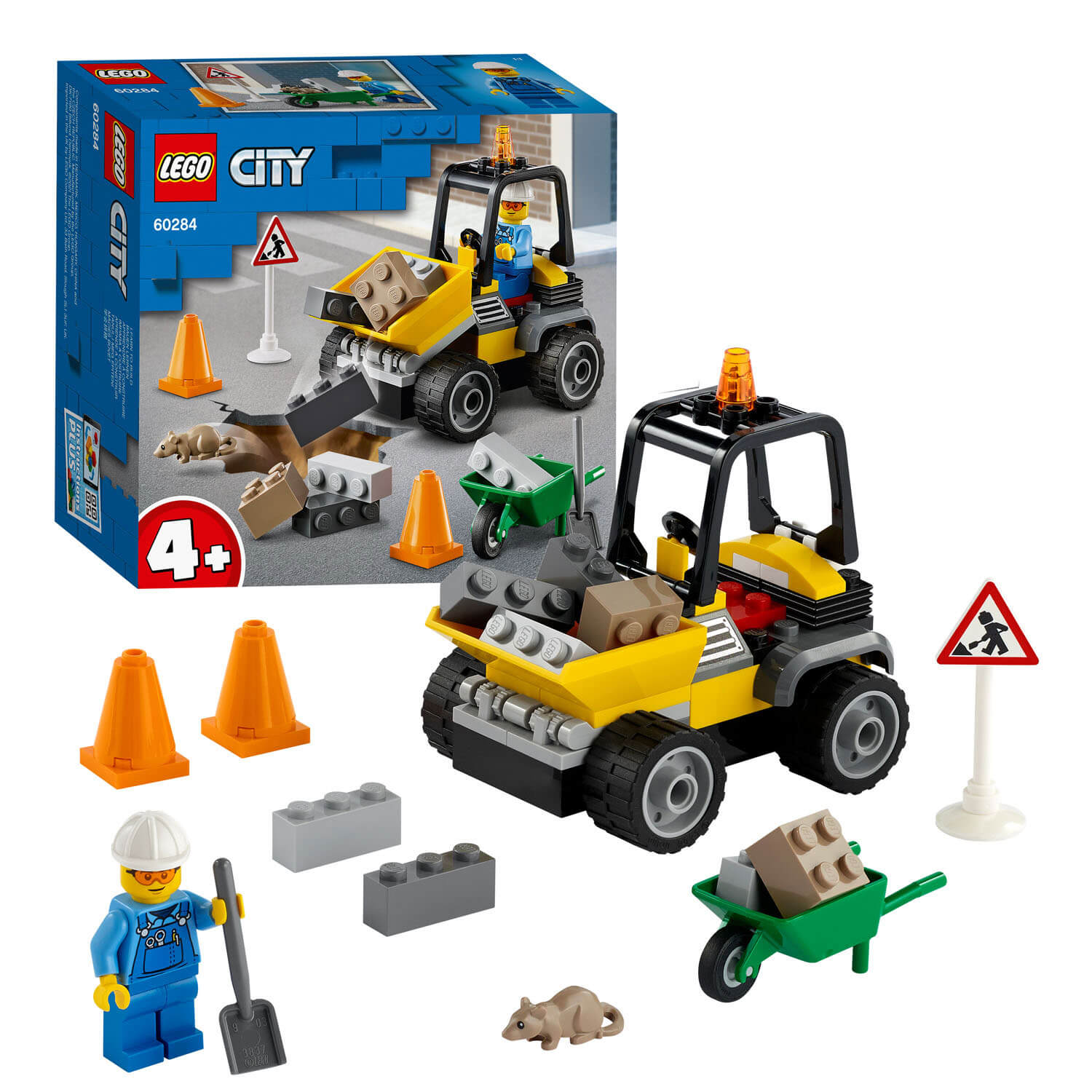 Це ідеальне знайомство з захоплюючим світом LEGO City. Набір відмінно підходить для хлопчиків і дівчаток у віці від 4 років. У нього входить екскаватор з ковшем, тачка, дорожні конуси, знак дорожніх робіт і лопата, а також мініфігурка робочого і фігурка щура. Діти можуть захистити район робіт конусами і поставити знак, заповнити ківш екскаватора. Розміри вантажівки в зібраному вигляді - 8 х 8 х 6 см.