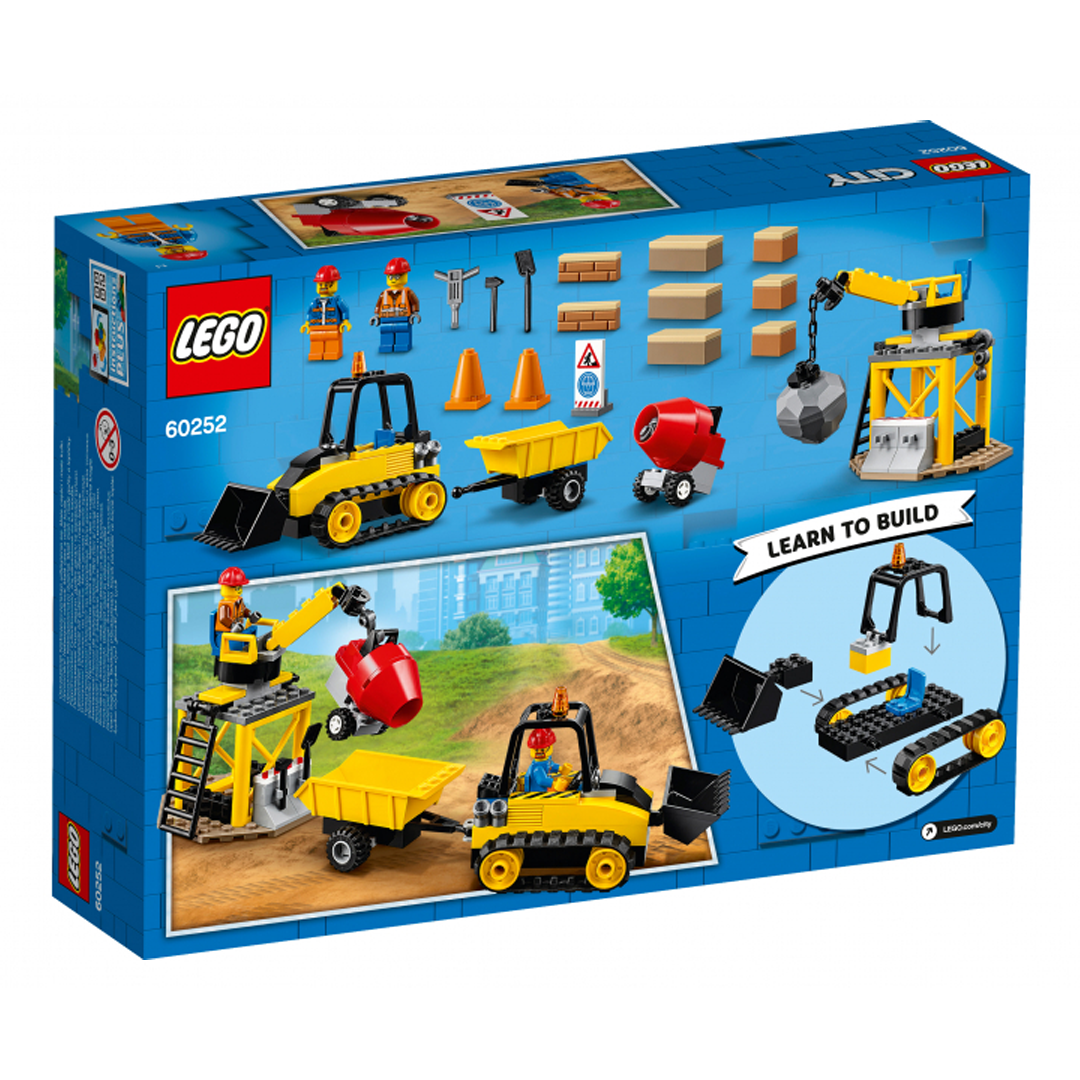 Будівельній бригаді LEGO® City потрібна твоя допомога. Встанови конуси та таблички для попередження перехожих, а потім піднімайся в кабіну і розгойдуй кульової таран, щоб знести стіну. Влучний удар. Робота зроблена! Сідай за кермо бульдозера з величезним ковшем і прибери будівельне сміття. Вивантаж бетономішалку, що стоїть на причепі, і приступай до будівництва нової стіни. Будівельники LEGO City сьогодні відмінно попрацювали. Іграшка рекомендована дітям від 4 років. До набору входять 126 деталей. Конструктори ЛЕГО розвивають уяву, дрібну моторику, просторове та логічне мислення.