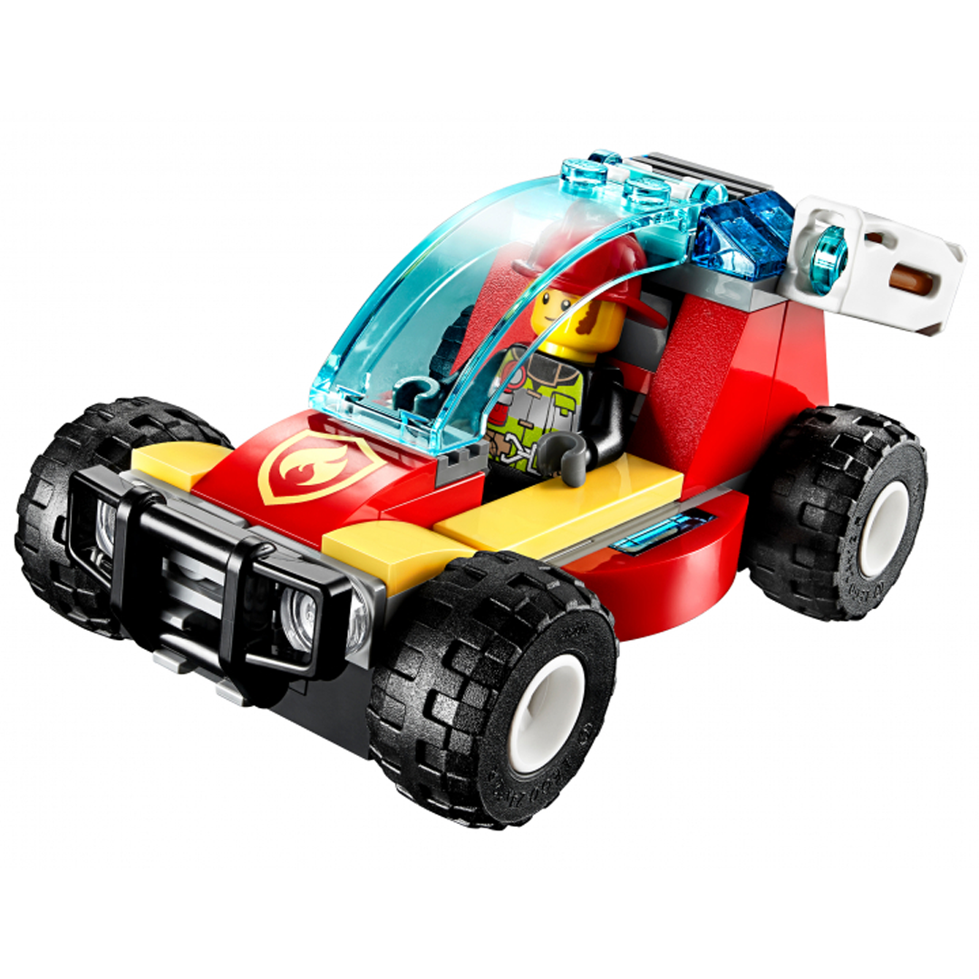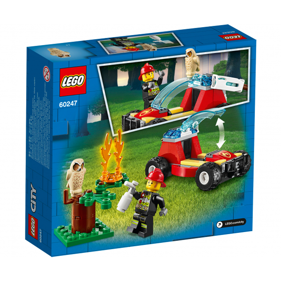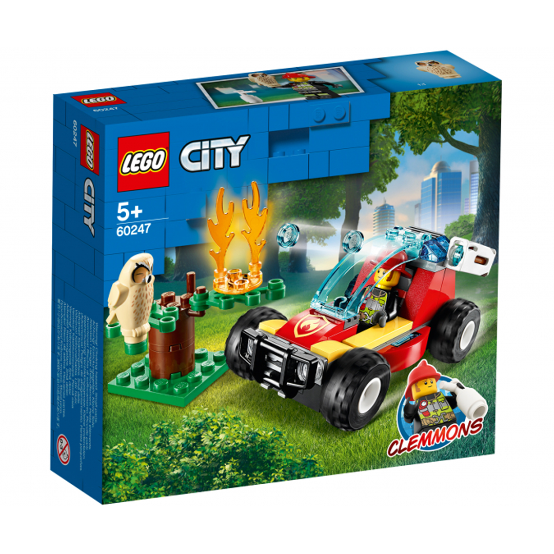 Тривога! Горить ліс! На місце події поспішає пожежна команда LEGO® City. Допоможи герою теленовин Клеммонсу примчатися на місце події за кермом супершвидкісного баггі. Який жах! Тварини в небезпеці! Загаси полум'я потужним водометом і евакуюй сову з верхівки дерева. Уф! Браві пожежники LEGO City зробили ще один героїчний вчинок. Набір складається з 84 деталей, рекомендований дітям від 5 років. Конструктори ЛЕГО розвивають уяву, дрібну моторику, просторове та логічне мислення.