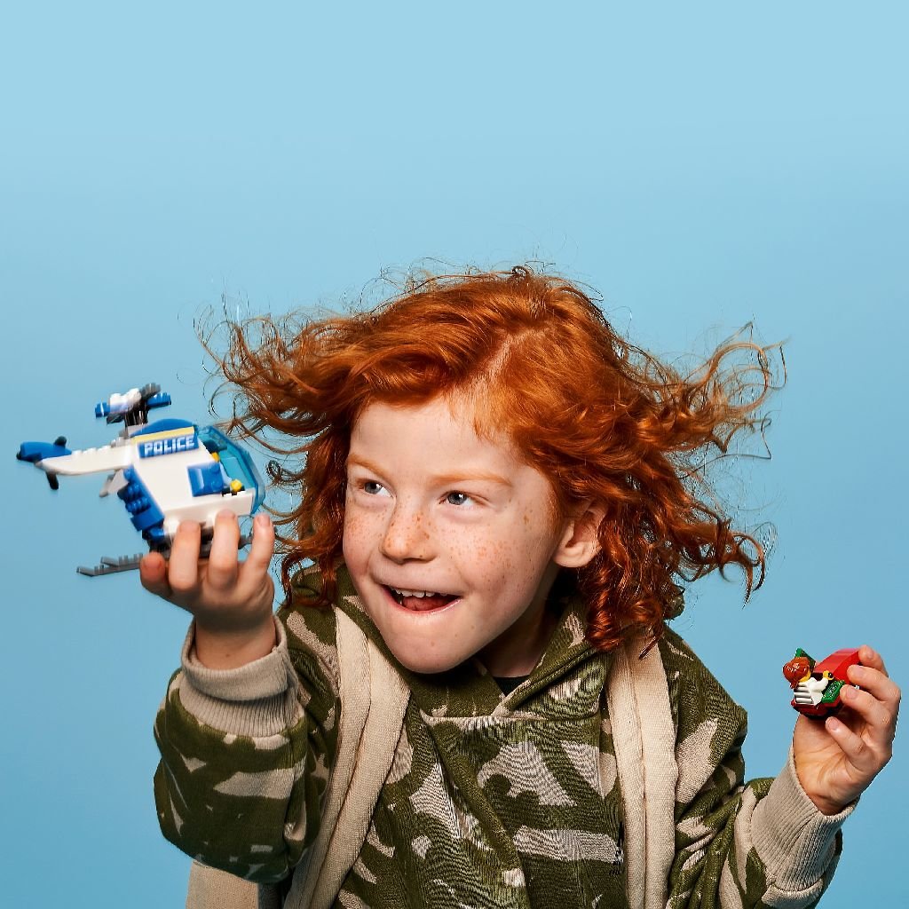Злочинець тікає, поліцейський наздоганяє – здається, тематика переслідування невичерпна. І в 2021 році «Лего» знову тішить шанувальників наборами героїчних місій. Стражі закону Lego City завжди напоготові, і для боротьби зі злочинцями в них є найновіша техніка – надшвидкий гвинтокрил.