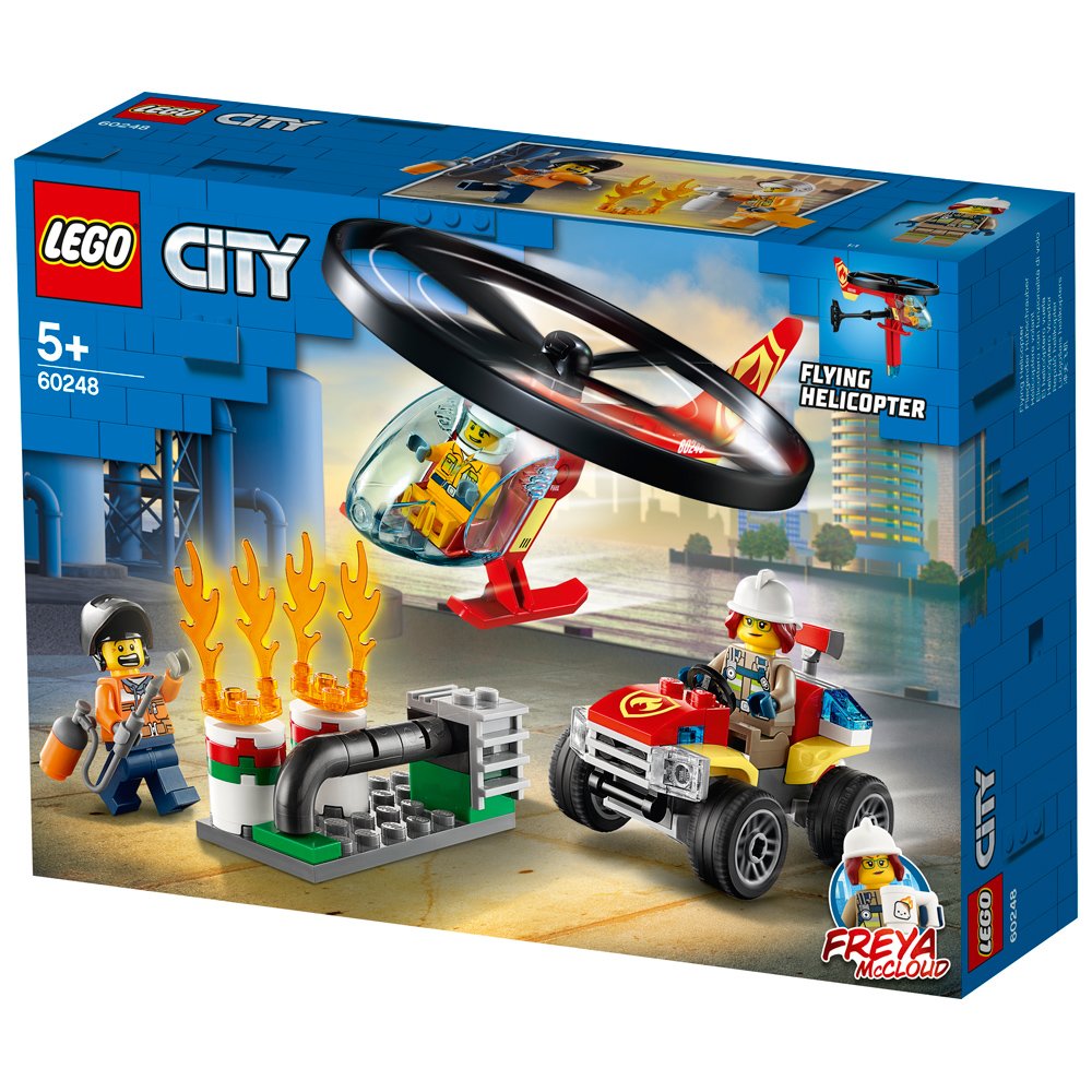 Познайомте маленького героя з дивовижним містом LEGO City! Ігровий набір включає в себе вертоліт з приводним механізмом і квадроцикл. Конструктор складається з 93-х деталей. Вертоліт оснащений приводним механізмом. Є палаюча труба, 3 мініфігурки персонажів (пілота-пожежного, робочого, який влаштував пожежу, і керівника пожежної служби Фрей МакКлауд). Рекомендований вік - 5-8 років. Розміри зібраного вертольота - 6 х 19 х 12 см, квадроцикла - 4 х 8 х 4 см.
