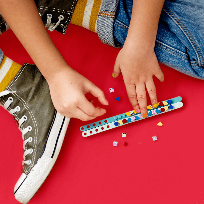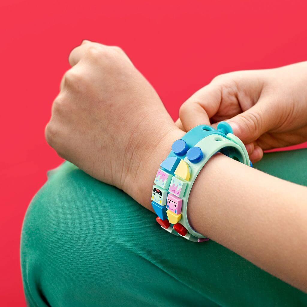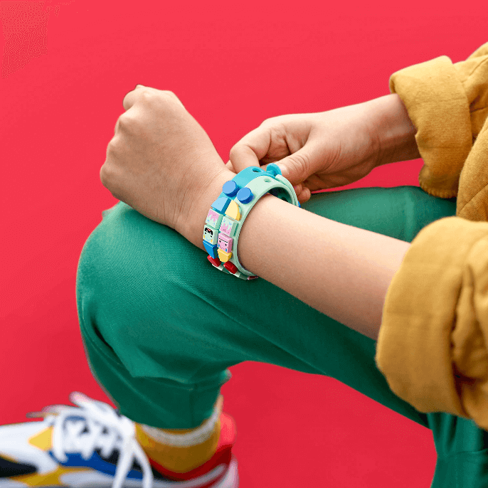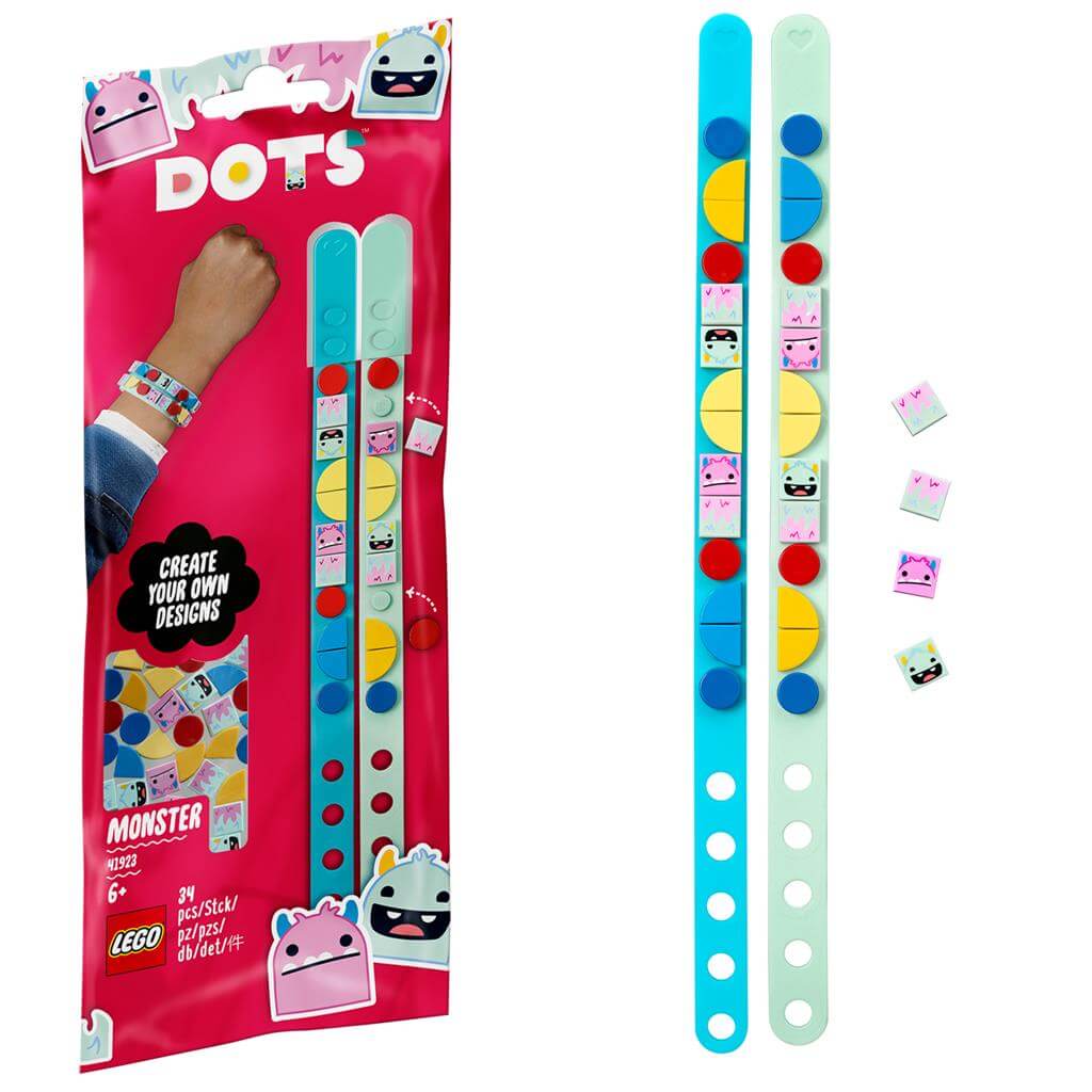 Здивуйте маленьку модницю оригінальним браслетом LEGO® DOTS! Набір для творчості розроблений для дітей 6-10 років. Складається з 2-х м'яких пластикових ремінців та 32-х невеликих накладок. Основи, на які кріпляться елементи, - блакитного та м'ятного кольору, не бояться вологи, регулюються на руці за допомогою п'яти отворів. Довжина ремінців - 20 см. Накладки мають різну форму та колір. На них зображені кумедні обличчя чудовиськ. Елементи витримують багаторазове закріплення. В процесі рукоділля розвивається навичка конструювання, логічне мислення, дрібна моторика, креативність, фантазія. Завдяки з'єднанням, малеча легко закріпить елементи на ремінці. Викладений з накладок візерунок буде унікальним. А дівчата так люблять бути неповторними!
