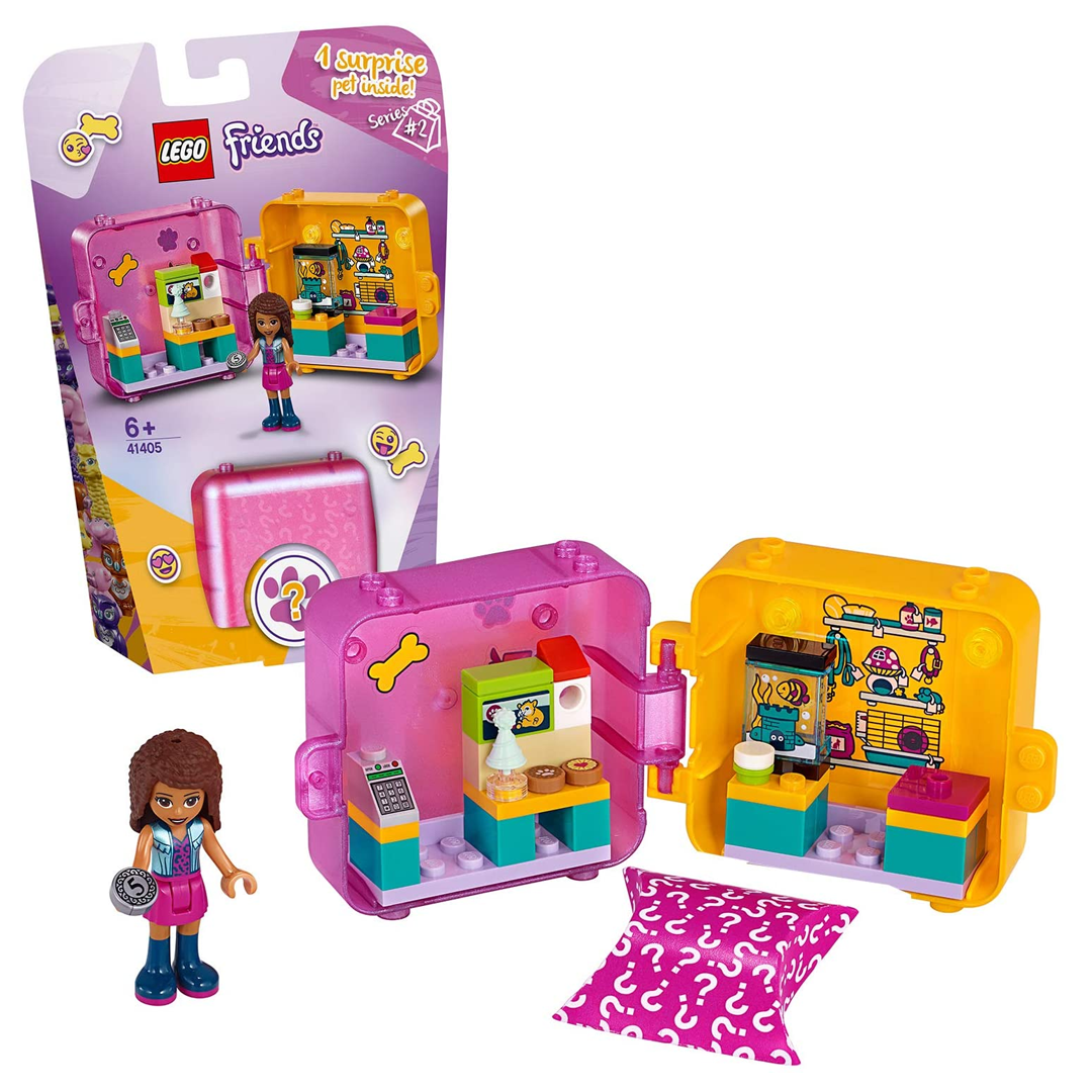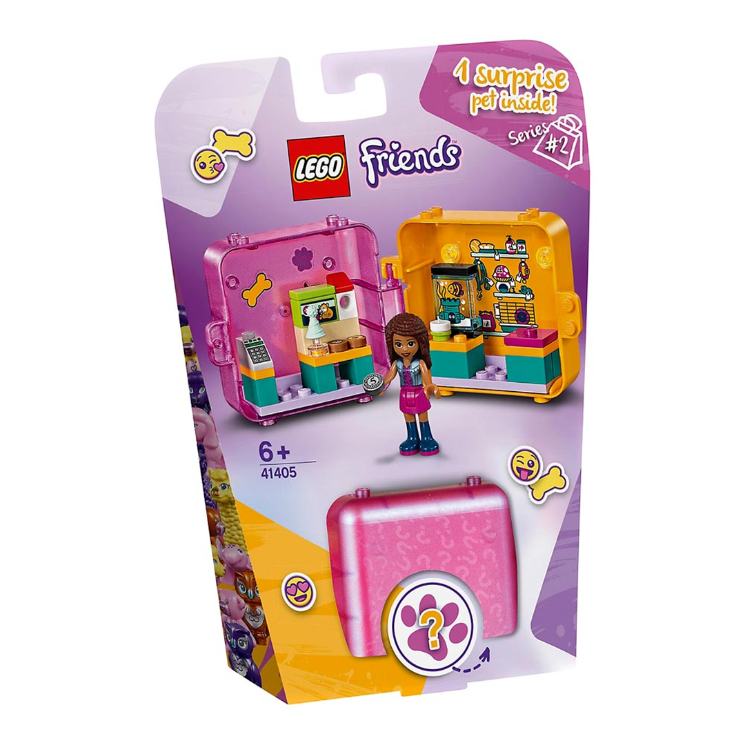 З конструктором-сюрпризом від LEGO юний дослідник точно не занудьгує! Ігровий куб "Андреа на шопінгу" створений для дітей 6-ти років. У яскравій рожево-жовтій коробочці, що відкривається як книжка, дитина знайде цілий зоомагазин. А ще в наборі заховане маленьке звірятко, з яким можна бавитися. Конструктор складається з 40 деталей. У зібраному вигляді має розміри 8 х 6 х 6 см. До комплекту входять тематичні аксесуари, які можна кріпити до скриньки, лялька Андреа та вихованець. Гра з конструктором ЛЕГО розвиває творчі здібності, уяву, дрібну моторику. Артикул 124530.