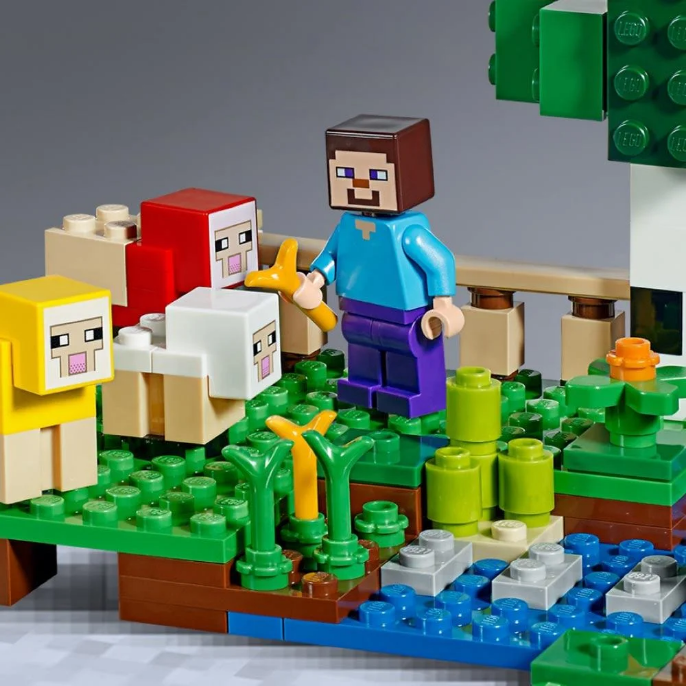 Дайте дітям можливість пограти зі справжніми персонажами Minecraft. Любителям відеоігри сподобається розігрувати пригоди Стіва, який може стригти овець, доглядати за ягням і будувати ферму. У наборі 250 деталей. Розміри ферми - 12 х 19 х 14 см. У комплект входять мініфігурки Стіва, червоних і жовтих овець, ягняти. Серед аксесуарів є береза, паркан, струмок, містки, поля, квіти, кольорові кубики, ножиці для стрижки. Дайте волю своїй уяві і створіть з деталей цього набору ще більше моделей LEGO Minecraft! Рекомендований вік - від 7 років.