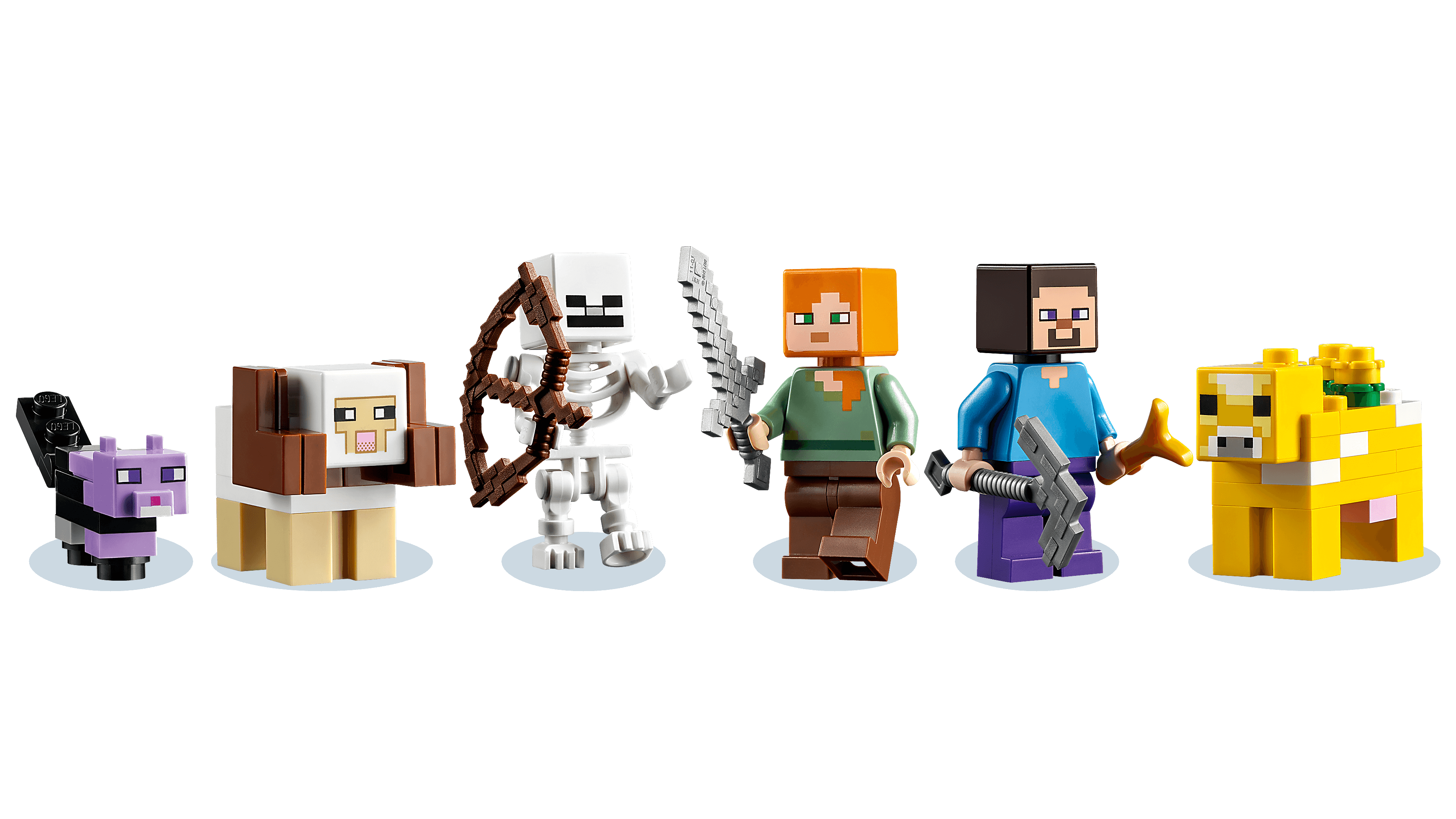 Набір включає в себе міні-фігурки Алекс і Стіва, два скелета, рогату вівцю, пофарбовану кішку і квіткову корову. Модель доповнена функціями для захоплюючої гри: ліфтом за водоспадом, рейками, що готові засипати, земляними кубиками, що ковзають, і функцією вибуху.