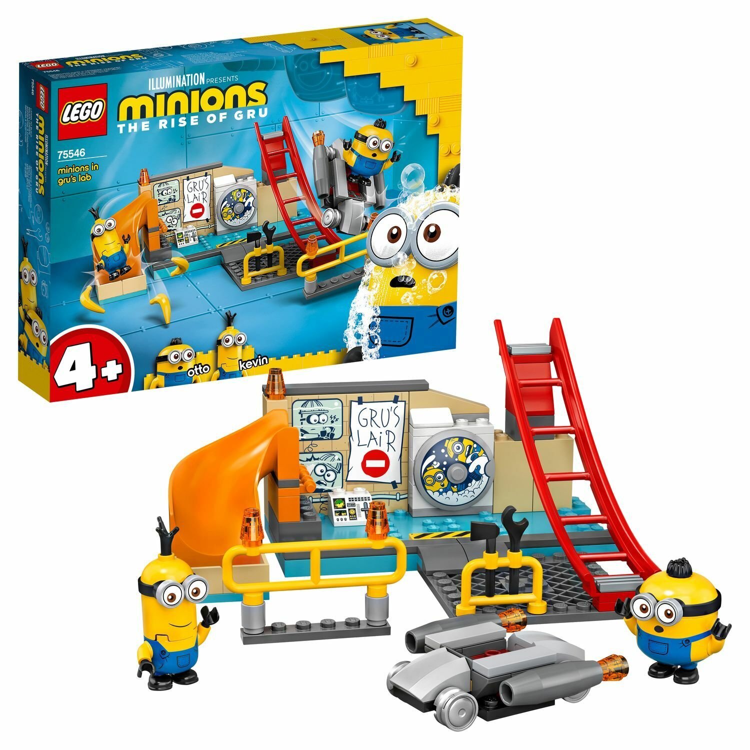 З набором LEGO "Міньйони в лабораторії Гру" діти 4 - 8 років отримають величезне задоволення, відтворюючи сцени з мультфільму «Міньйон: Грувітація». В комплекті 87 елементів з яскравого міцного пластику. З деталей дитячого конструктора треба зібрати наукову лабораторію розміром 17 х 13 х 8 см. Фігурки посіпак Кевіна й Отто, а також реактивний мінілітак зроблять гру більш захоплюючою. Гра з конструкторами "Лего" розвиває фантазію, посидючість, креативність, просторове мислення, комунікативні навички.