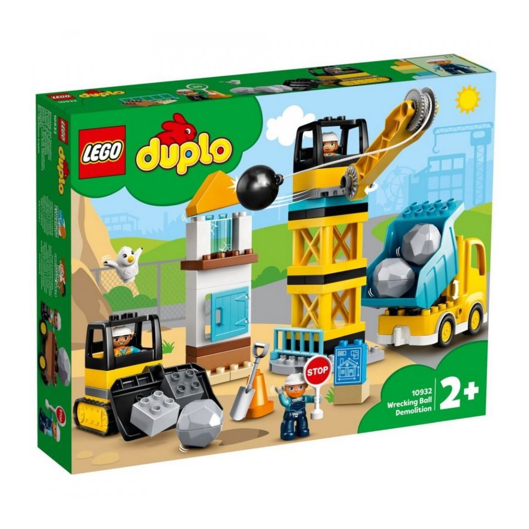 Знайомте малюка з професіями та спеціальним транспортом за допомогою конструктора LEGO® DUPLO®! Ігровий набір розроблений для дітей старше 2-х років. Включає 56 невеликих барвистих блоків, з яких можна зібрати вантажівку з відкидним кузовом, кран з кулею, бульдозер, будівлю для знесення та фігурки трьох будівників. Іграшка продумана до дрібниць: в комплекті є лопата, вантаж, камені, дорожні конуси і знаки. Розміри крана - 29 х 28 х 13 см, вантажівки - 12 х 15 х 7 см, бульдозера - 12 х 15 х 7 см. Конструктор для самих маленьких розвиває дрібну моторику, формує початкове вміння будувати. В процесі гри малюк вчиться взаємодіяти з навколишнім світом, створювати уявні ситуації. Невеликими за розміром фігурками зручно грати: вони вміщуються в дитячу ручку. А шипове з'єднання спрощує збір конструкції. Артикул 124481.