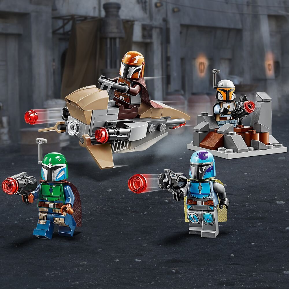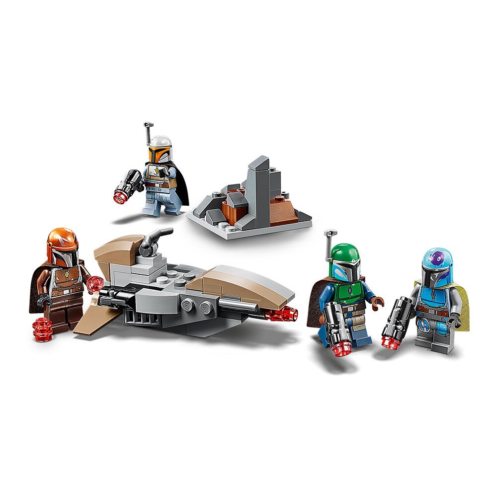 Кумедний конструктор, за допомогою якого маленькі шанувальники «Зоряних воєн» зможуть створити власну армію. Набір включає в себе 102 деталі. Прекрасний подарунок для хлопчиків і дівчаток у віці від 6 років. У набір входять 4 мініфігурки мандалорских воїнів LEGO Star Wars, збірна модель оборонного форту, спідер мандалорців з двома шутерами. Для ігор не потрібні батарейки! Мандалорці озброєні бластерами, які стріляють шипами. Розміри спідера - 4 х 8 х 6 см. Ця модель, а також модель форту і мініфігурки легко помістяться в вашу сумку або дитячий рюкзачок, так що ви зможете взяти пригоди з собою в дорогу.