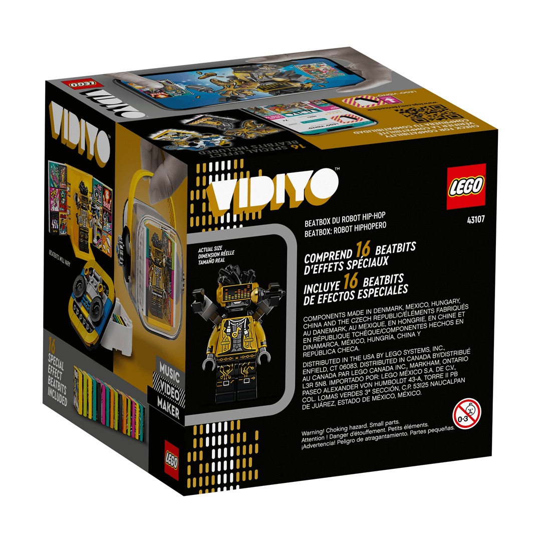 Подивіться, як діти стають режисерами і виконують головні ролі в своїх музичних кліпах з набором LEGO® VIDIYO™ HipHop Robot BeatBox (Бітбокс Хіп-Хоп Робота) (43107). Він включає мініфігурки робота, аксесуар-мікрофон, 14 випадкових BeatBits і 2 ексклюзивних BeatBits.
