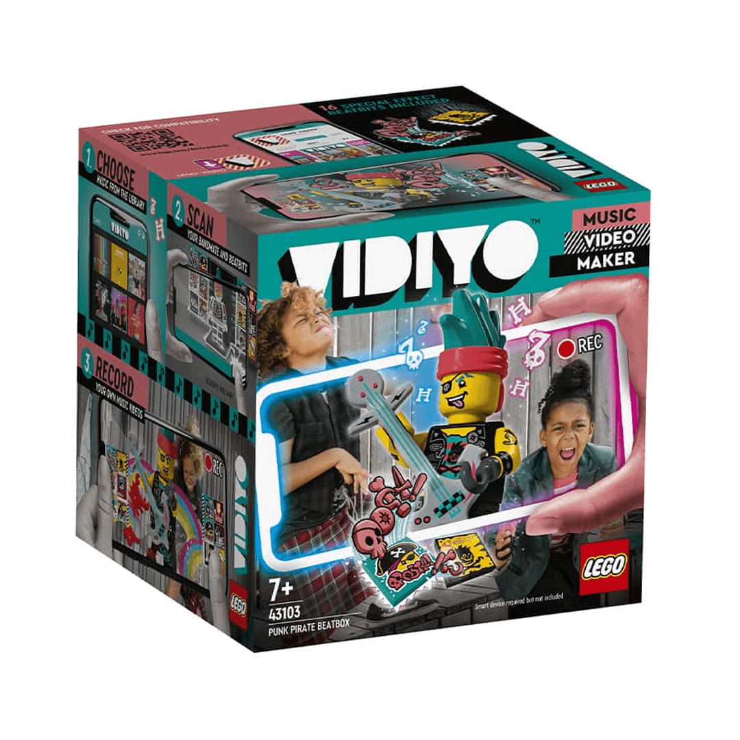 Подивіться, як діти стають режисерами і виконують головні ролі в своїх музичних кліпах з набором LEGO® VIDIYO™ Punk Pirate BeatBox (Бітбокс «Пірат-панк») (43103). Він включає мініфігурки діджея-пірата з гітарою, 14 випадкових BeatBits і 2 ексклюзивних BeatBits.
