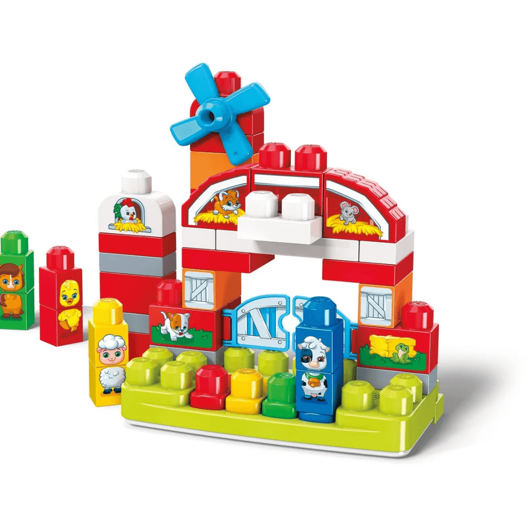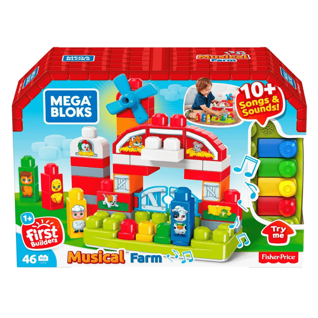 "Музична ферма" Mega Bloks - яскравий конструктор з музичним супроводом для малюків від 18 місяців. У наборі - 46 барвистих блоків, виготовлених з міцного та безпечного пластику. Завдяки невеликому розміру, вони легко поміщаються у дитячу ручку. Завдання малюка - правильно скласти ферму: щоб усі тваринки були на своїх місцях. Для живлення іграшці необхідні 2 батарейки АА. У зібраному вигляді конструкція видає звуки свійських тваринок. Гра з ігровим набором розвиває дрібну моторику, творчі здібності, навчає назвам тварин та кольорів.