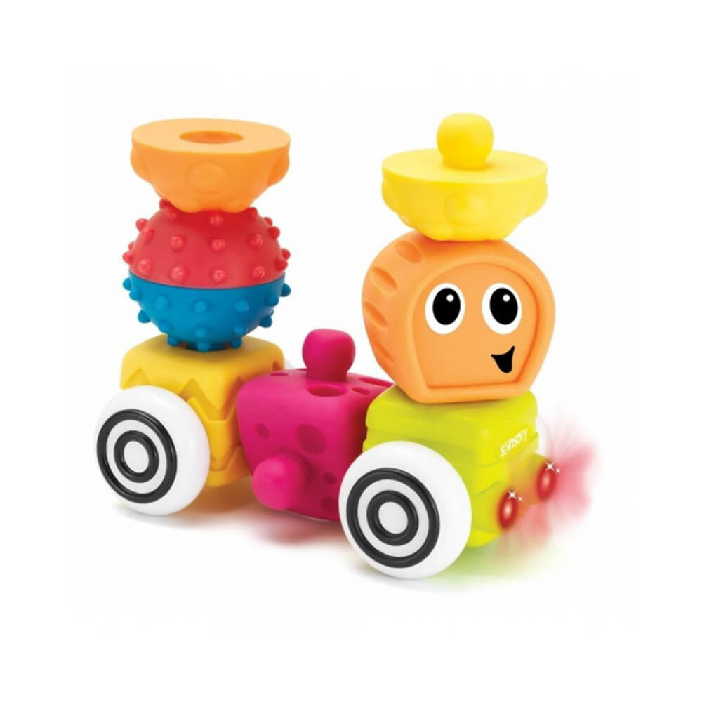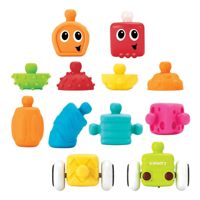 "Текстурні блоки" Sensory - набір великих яскравих блоків для конструювання найменшими дітлахами. Рекомендований з 9-ти місяців. У комплекті - 12 різних за формою, величиною, кольором, текстурою елементів. Гру з конструктором робить цікавішою світловий та музичний супровід. Іграшка видає 4 звуки, 3 мелодії, сяє під час складання. Розвиває сенсорику та моторику малюка.
