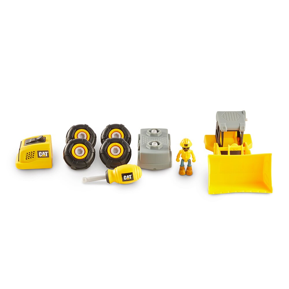 Новий ігровий набір від торгової марки CAT допоможе дитині зібрати функціональний і реалістичний колісний навантажувач. Готовий навантажувач ретельно деталізований і повністю схожий з оригінальним зразком. У нього рухомий ківш і широкі колеса з рельєфними протекторами, які можуть проїхати по будь-якій поверхні. Для зберігання і транспортування елементів конструктора передбачений зручний кейс із ручкою.