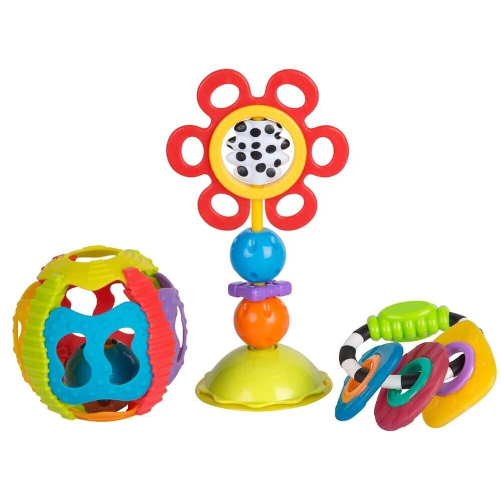У наборі іграшок - прорізувачів ви знайдете брязкальця, які познайомлять малюка з різними фігурами і формами. Іграшки мають пересувні елементи, шарудять і роблять дзвінкі звуки, які сприяють правильному розвитку малюка.