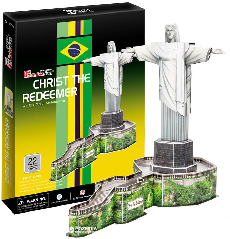 3D пазли CubicFun — об'ємні конструктори-головоломки, які виглядають зовсім як справжні, і з історичною точністю повторюють кожну деталь зовнішнього вигляду світових архітектурних споруд.Статуя Христа-Спасителя — знаменита статуя Христа з розпростертими руками на вершині гори Корковаду в Ріо-де-Жанейро. Є символом Ріо-де-Жанейро і Бразилії в цілому.