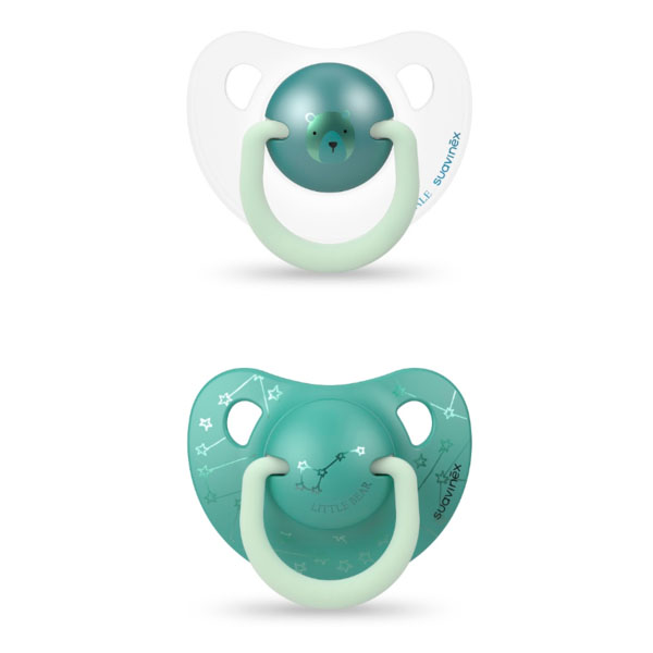Suavinex Зелений ведмедик - пустушка анатомічна нічна. Світиться у темряві. Соска м'яка і гнучка, виготовлена із силікону - міцного і еластичного матеріалу.