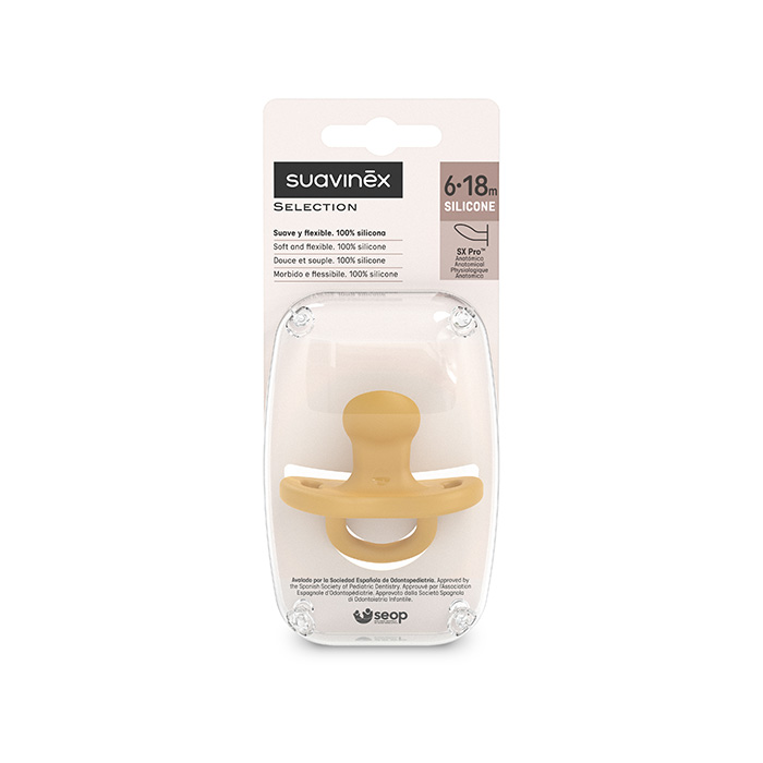 Пустушка анатомічна Suavinex виготовлена із силікону - міцного і еластичного матеріалу.