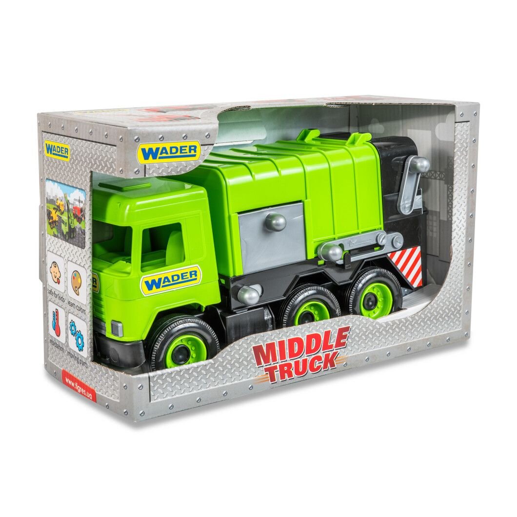 Іграшковий сміттєвоз Middle Truck виготовлений з легкої, але міцної пластмаси, стійкої до погодніх умов. Завдяки цьому іграшкова машинка чудово підходить як для гри вдома, так і на вулиці. Упаковка - картон.