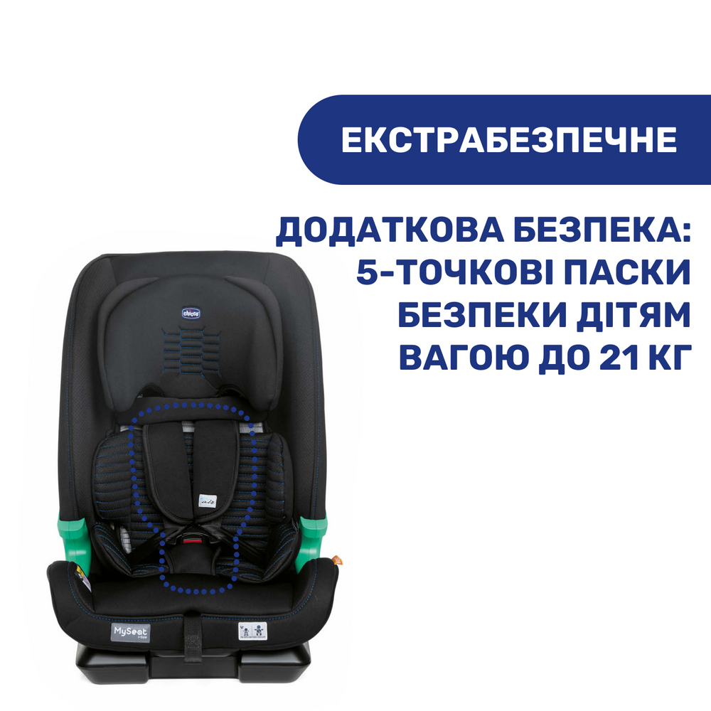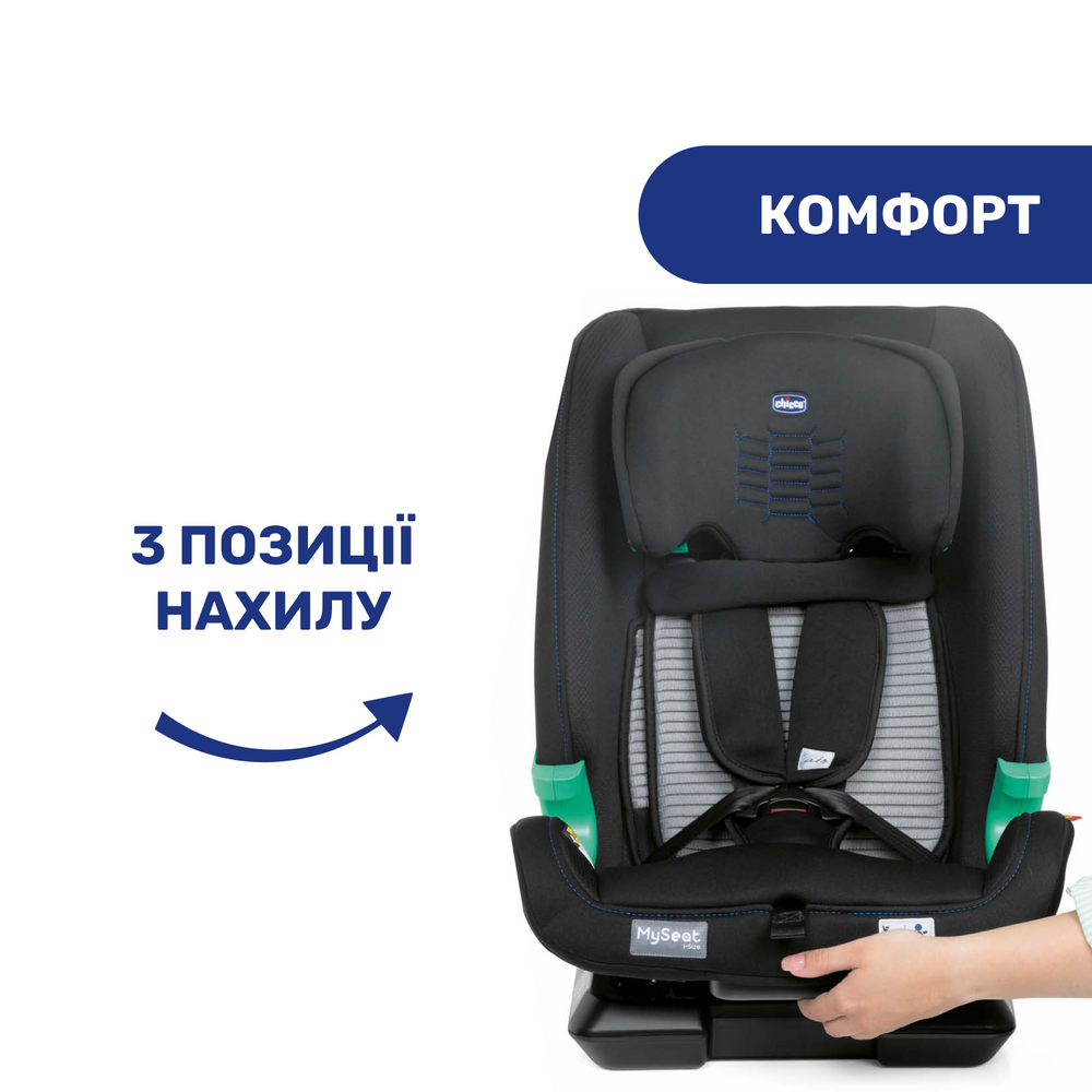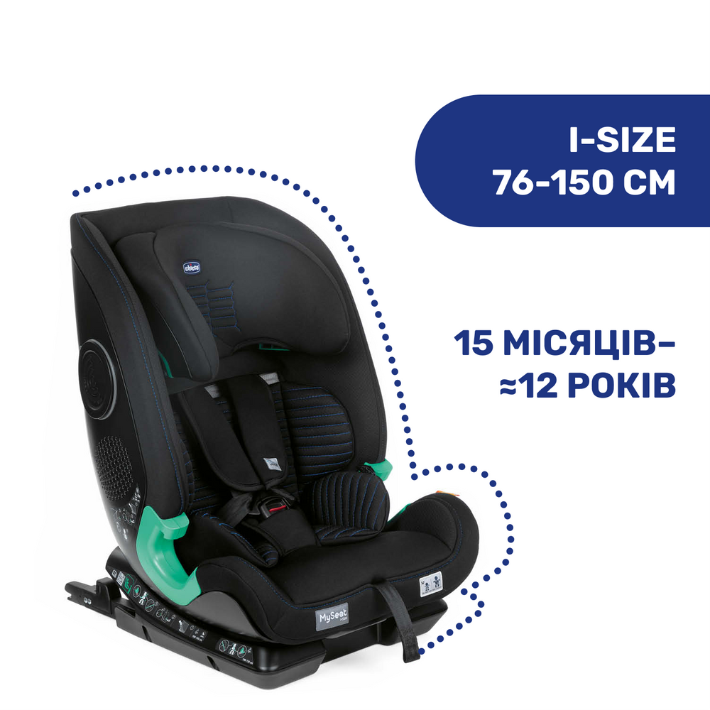 Автокрісло MySeat i-Size з системою Isofix призначене для перевезення дітей від 15 місяців до 12 років. MySeat i-Size відповідає європейським вимогам безпеки ECE R129/03 (i-Size)* та належить до групи 1/2/3.