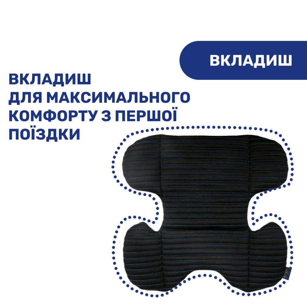 Комфорт: Fit-Kit – система ярликів-підказок допомагає зрозуміти віковий діапазон використання, підказує як правильно встановити автокрісло та використовувати систему ременів безпеки. 3 рівні нахилу сидіння та 13 рівнів висоти підголівника для адаптації автокрісла під ріст дитини. Інноваційний каркас із внутрішньою системою циркуляції повітря. Знімний анатомічний вкладиш забезпечує зручність і комфорт (використовується для дітей зростом від 76 до 87 см).
