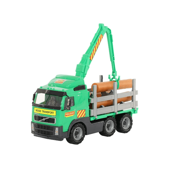 Автомобіль-лісовоз Volvo з причепом має реалістичні функційні елементи: обертові колеса та рухомий керований кран. Іграшка сприяє розвитку спритності, дрібної моторики, колірного сприйняття, творчого мислення, уваги й уяви.