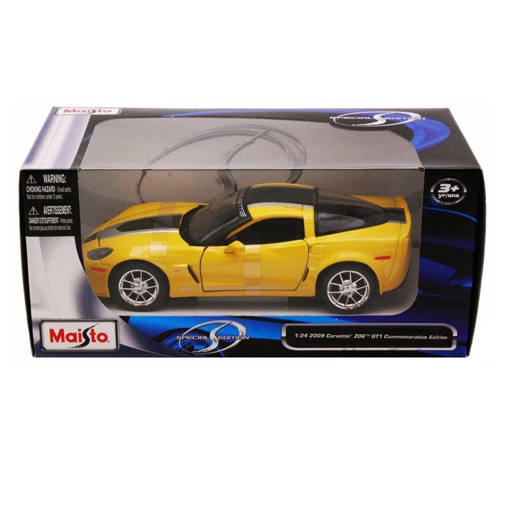 Автомодель 2009 Chevrolet Corvette Z06 GT1 - високоякісна колекційна модель реального автомобіля представлена серією Maisto Special Edition. У автомоделі литий металевий корпус з високою деталізацією двигуна, інтер'єру салону, дисків і протекторів. Точна ліцензійна копія реального автомобіля має масштаб 1:24.