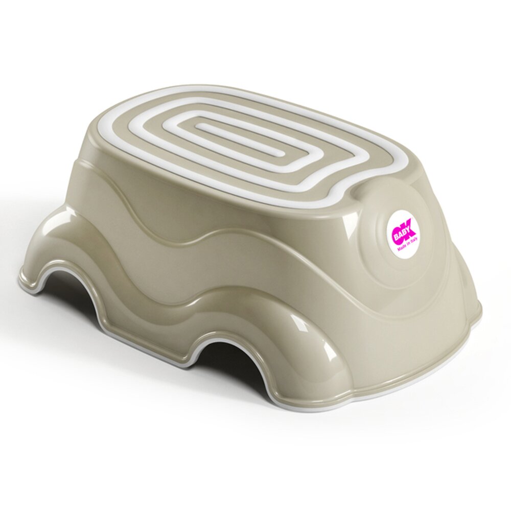OK Baby Herbie - це стільчик-підставка, з яким малюк без проблем користуватиметься раковиною чи унітазом, незважаючи на свій невеликий зріст. Виготовлена з безпечного пластику. Прогумована по периметру, що запобігає ковзанню і перекиданню. Верх підставки також має прогумоване покриття. Гострі кути відсутні.