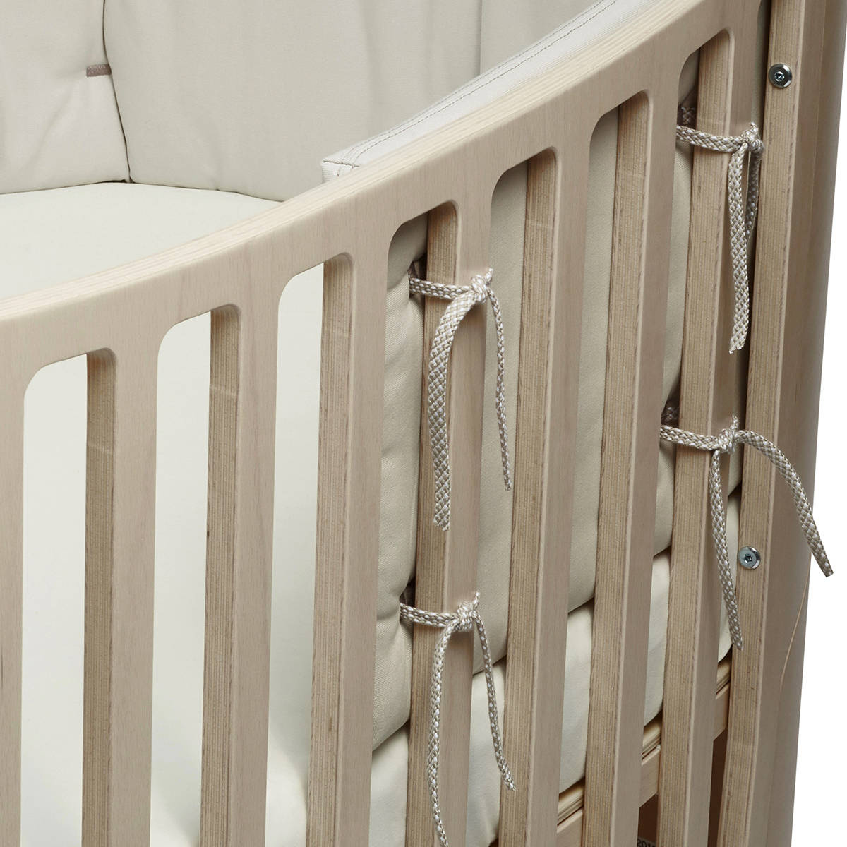Міцна тканина виготовлена з органічної бавовни, а завдяки повітряній флісовій підкладці ліжко залишається дихаючим. Для забезпечення оптимальної якості сну та природного регулювання температури в ліжечку бампер закриває лише одну половину ліжечка. Це забезпечує стабільний потік повітря.