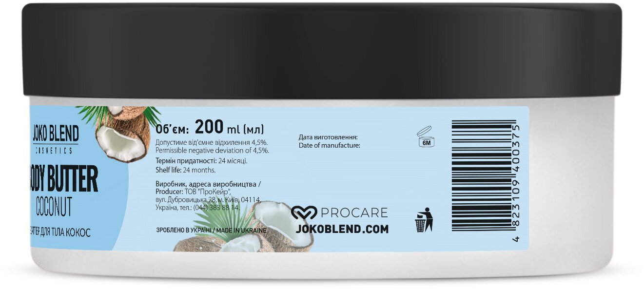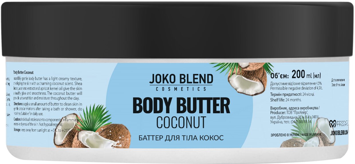Кокосовий батер подарує ультраживлення і зволоження упродовж усього дня.
