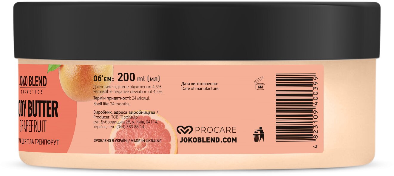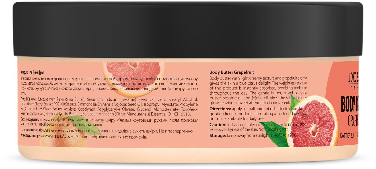 Батер для тіла з легкою вершково-кремовою текстурою й ароматом грейпфрута подарує шкірі справжнє цитрусове задоволення. Завдяки вмісту цінної олії ши, засіб стане справжнім поживним еліксиром для тіла. Кунжутна олія прекрасно живить, а вітамін Е допомагає відновити гладкість і пружність шкіри тіла. Невагома текстура засобу миттєво вбирається, забезпечуючи зволоження упродовж усього дня.