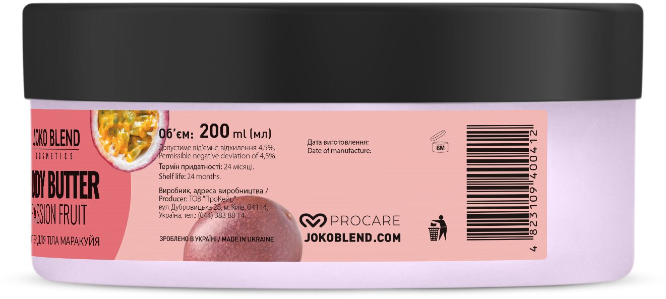 Вишуканий батер для тіла має легку вершково-кремову текстуру і тропічний аромат маракуї. Завдяки вмісту цінної олії ши, засіб стане справжнім поживним еліксиром для тіла. Олія авокадо насичує шкіру необхідними цінними речовинами, а еластин надає їй максимальне зволоження.