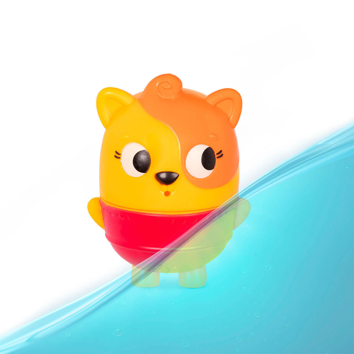 Цей яскравий набір з кумедними гумовими фігурками-звірятами бризкається емоціями і дарує фонтан веселощів! Нарешті фігурки для ванни легко очищуються, щоб усередині не з'являвся грибок: просто розкрутіть, очистіть і висушіть. Фігурки можна стискати, кусати і ... купати!