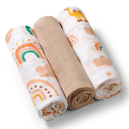 М'які та легкі тонкі пелюшки з двошарового мусліну. Натуральна тканина добре відводить піт, не подразнює ніжну шкіру малюка. Забезпечує вільну циркуляцію повітря, не призводить до парникового ефекту. Пелюшки підходять для сповивання дітей від народження. Їх можна стелити у ліжко чи візочок, на сповивальний стіл, в ігровому куточку, використовувати замість банного рушника.