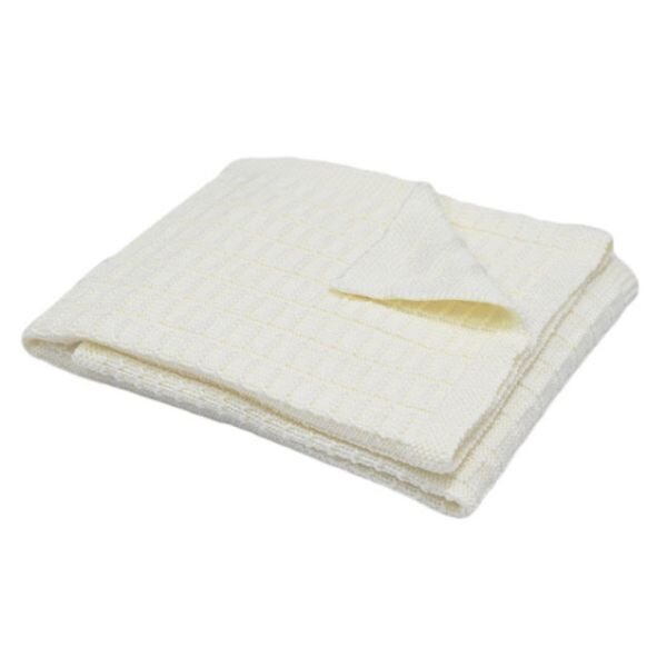 Стильний трикотажний плед у молочному кольорі підходить для дому та прогулянок на вулиці в колясці в демісезонний та літній період.