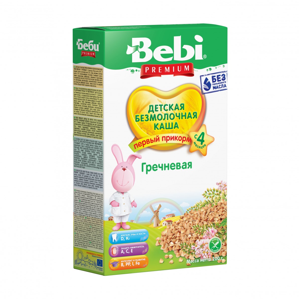 Гречана, безмолочна, суха, швидкорозчинна каша Bebi призначена для годування дітей віком від 4 місяців. Гречка, що входить до складу каші Bebi, належить до безглютенових культур, що дає змогу додавати її до раціону дитини з 4 — 4,5 місяців життя.