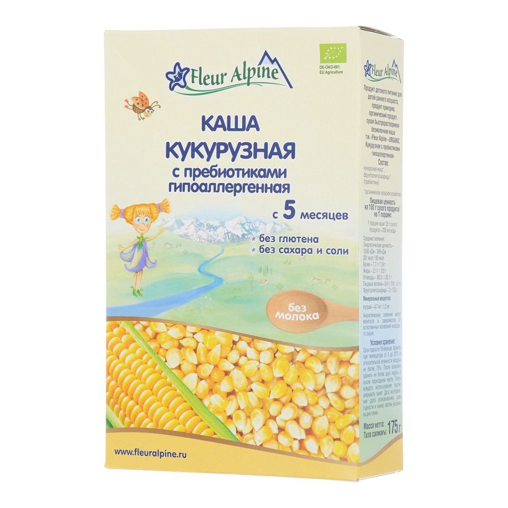 Каша безмолочна Fleur Alpine Кукурудзяна з пребіотиками гіпоалергенна для дітей старше 5 місяців. Гіпоалергенність підтверджена клінічними дослідженнями. Без глютену. Не містить слідів молока. Без додавання цукру. Розчиняється легко, швидко і без грудочок.