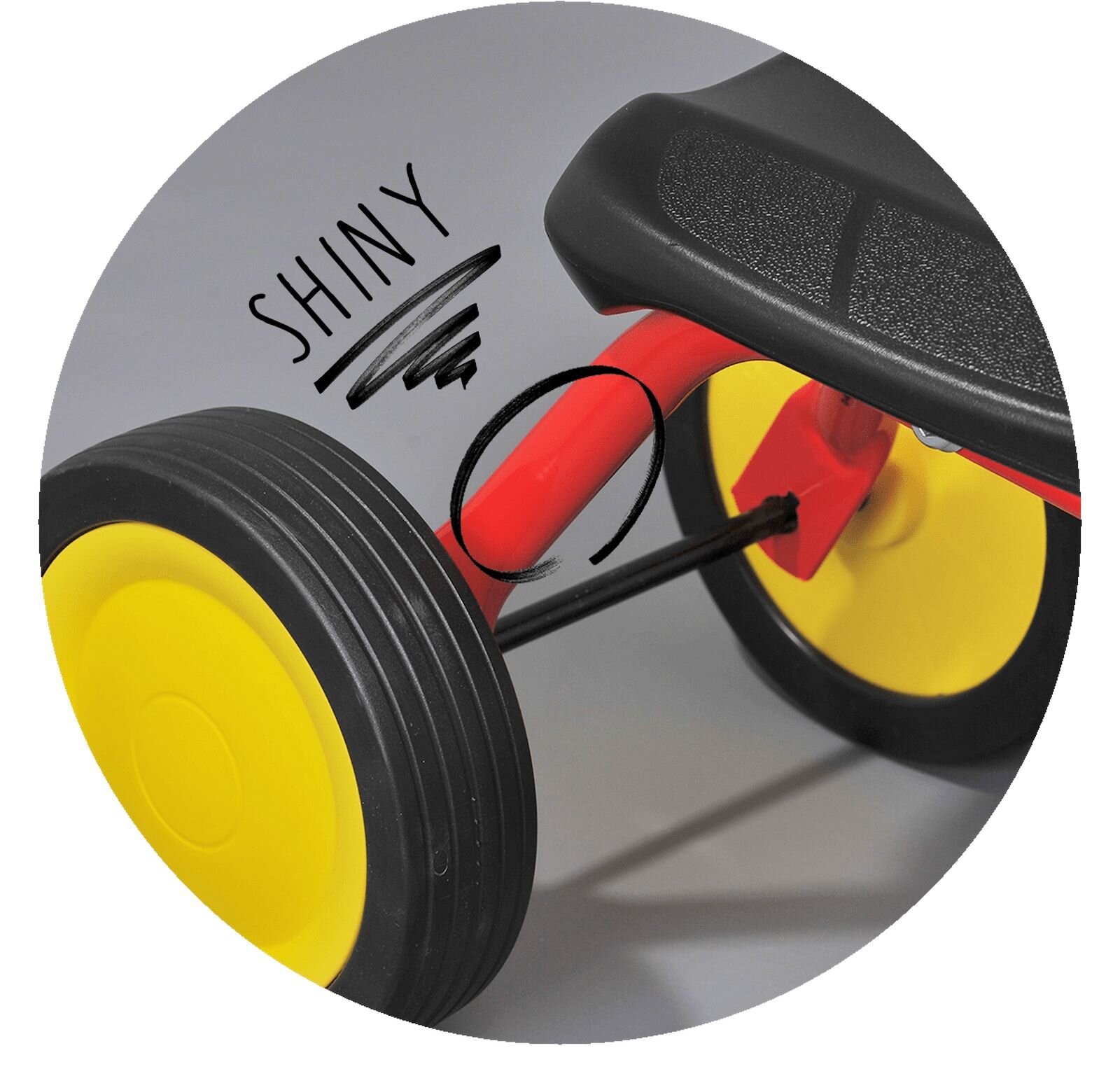 Високоякісні гріпси керма захистять ручки малюка, а ударостійке порошкове покриття гарантує максимальний термін служби.