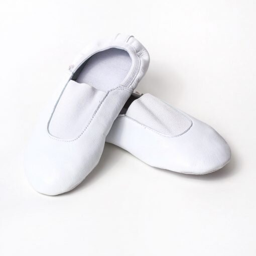 Зручне дитяче взуття для активного відпочинку, танців або гімнастичних занять. Верх виготовлений зі шкіри, підошва - з мікрофібри. Є додаткова задня резинка, відкрита резинка і вшита устілка довжиною 20,5 см. Колір - білий. Унісекс. Розмір - 32 (на 7 років). Виробництво Україна.
