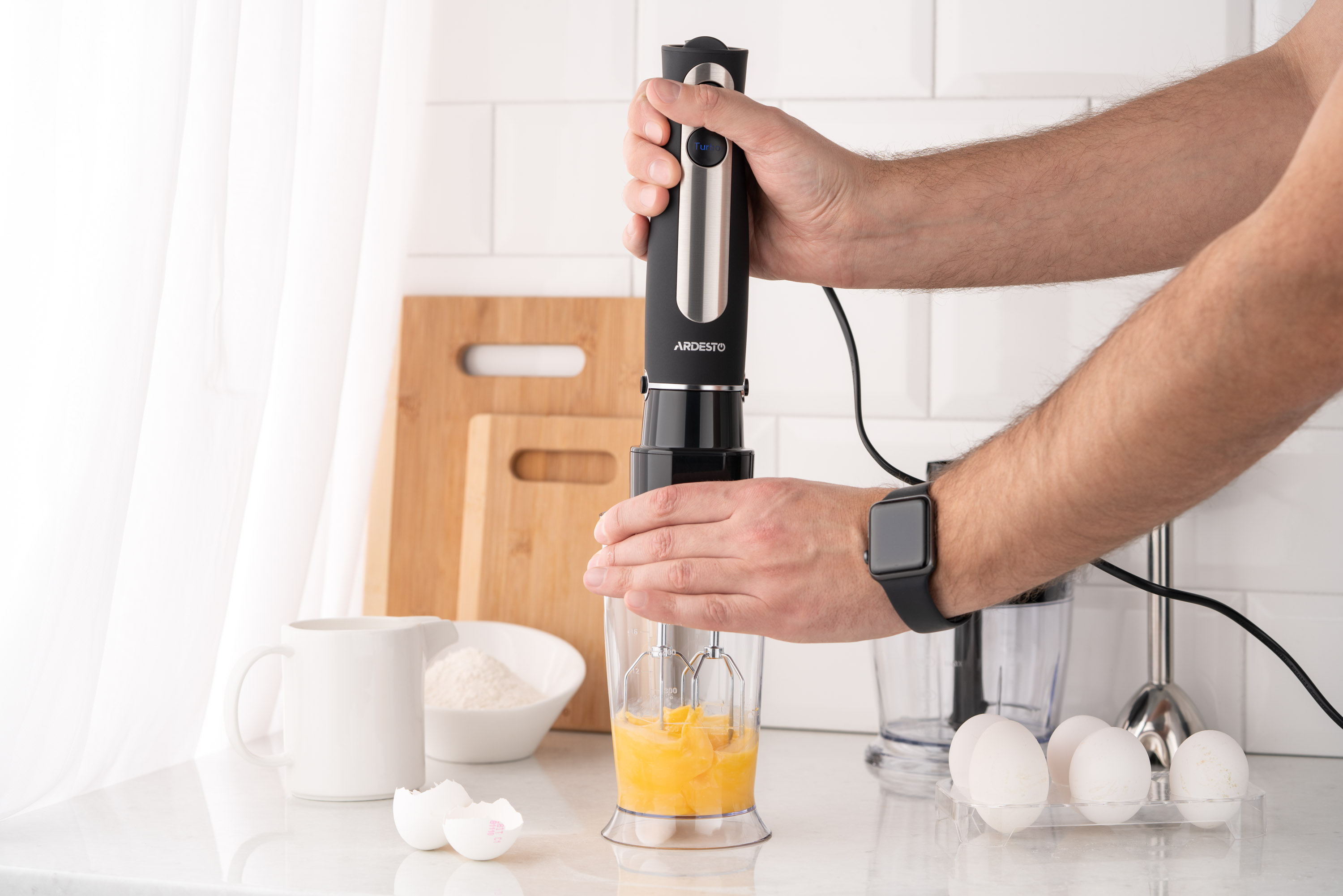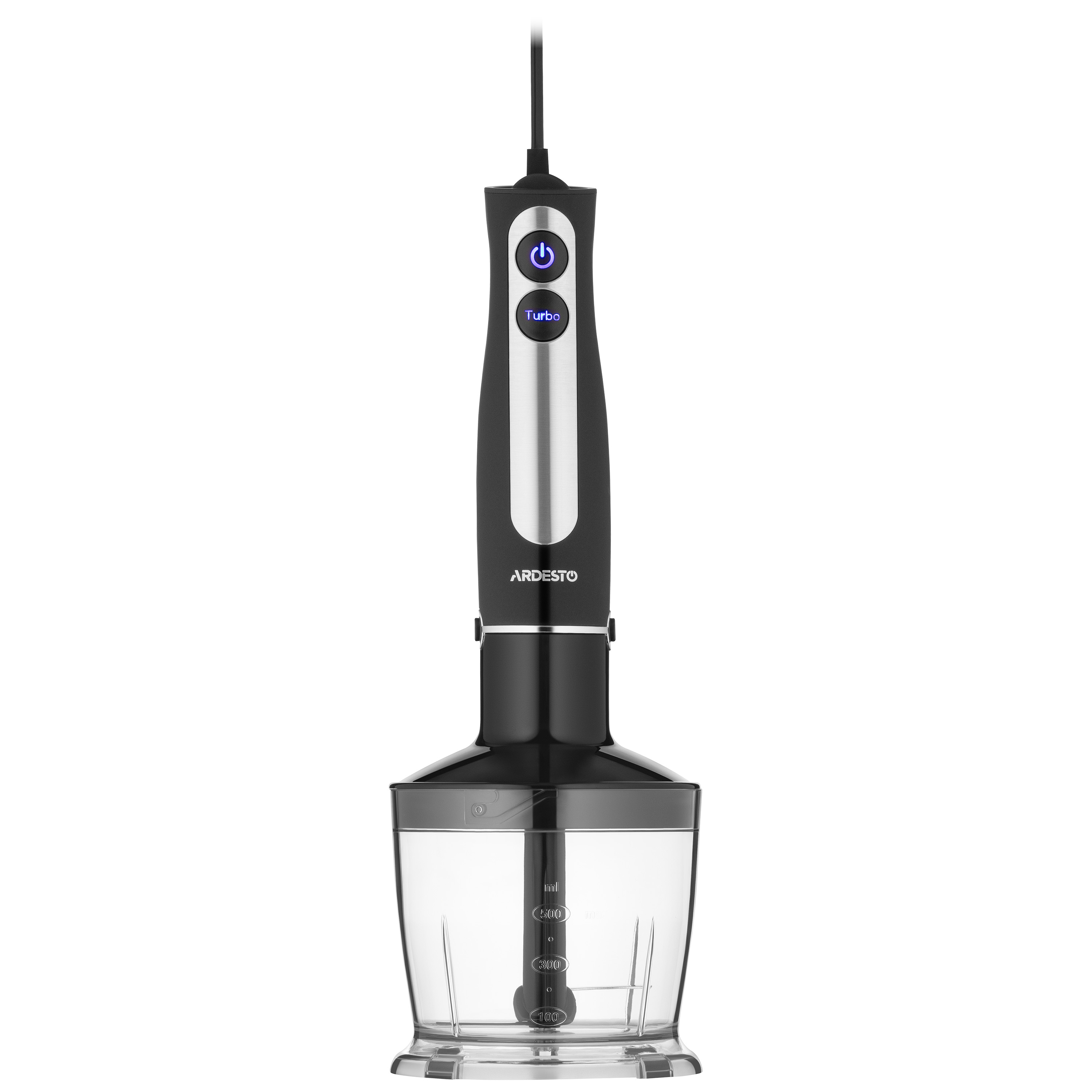 Занурювальний блендер ARDESTO HBG-800BDWHCH чорно-сріблястого кольору згодиться для швидкого приготування коктейлів, смузі, соків і різноманітних соусів. Оснащений двигуном потужністю 800 Вт із низьким рівнем шуму, двома режимами роботи (звичайний і турбо) і п’ятьма швидкостями. До того ж доступні три функції приготування продуктів: змішування, подрібнення, збивання.