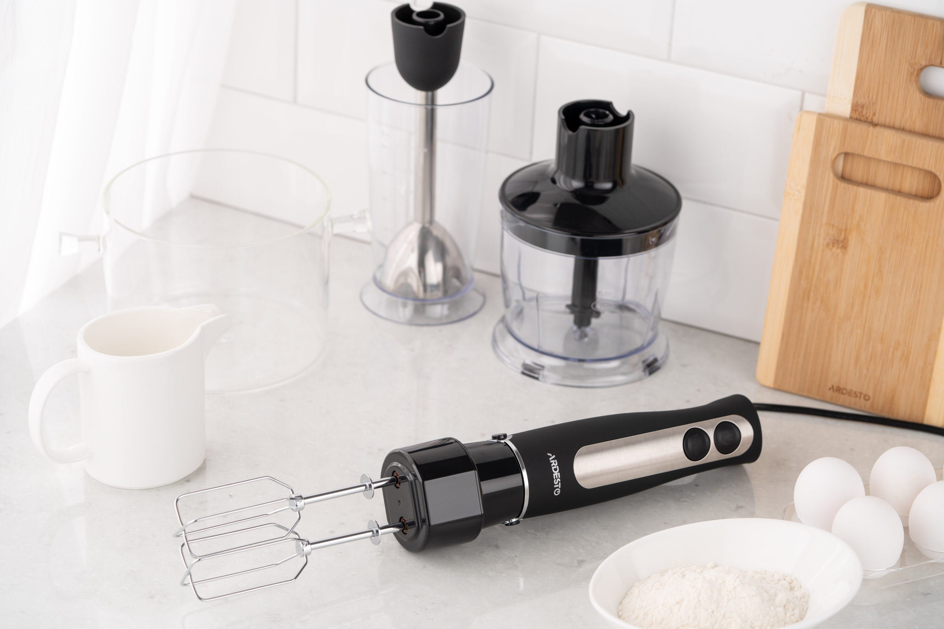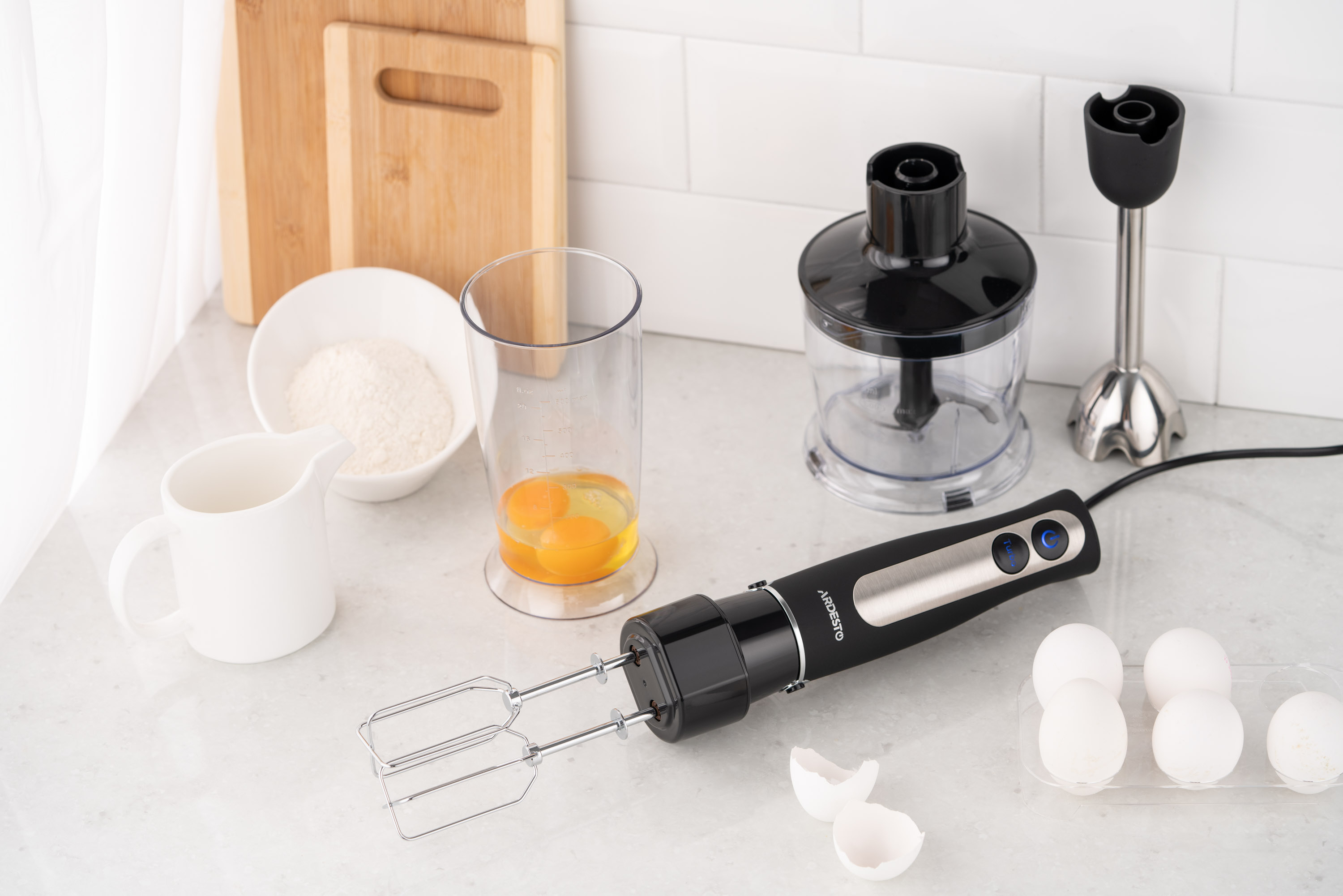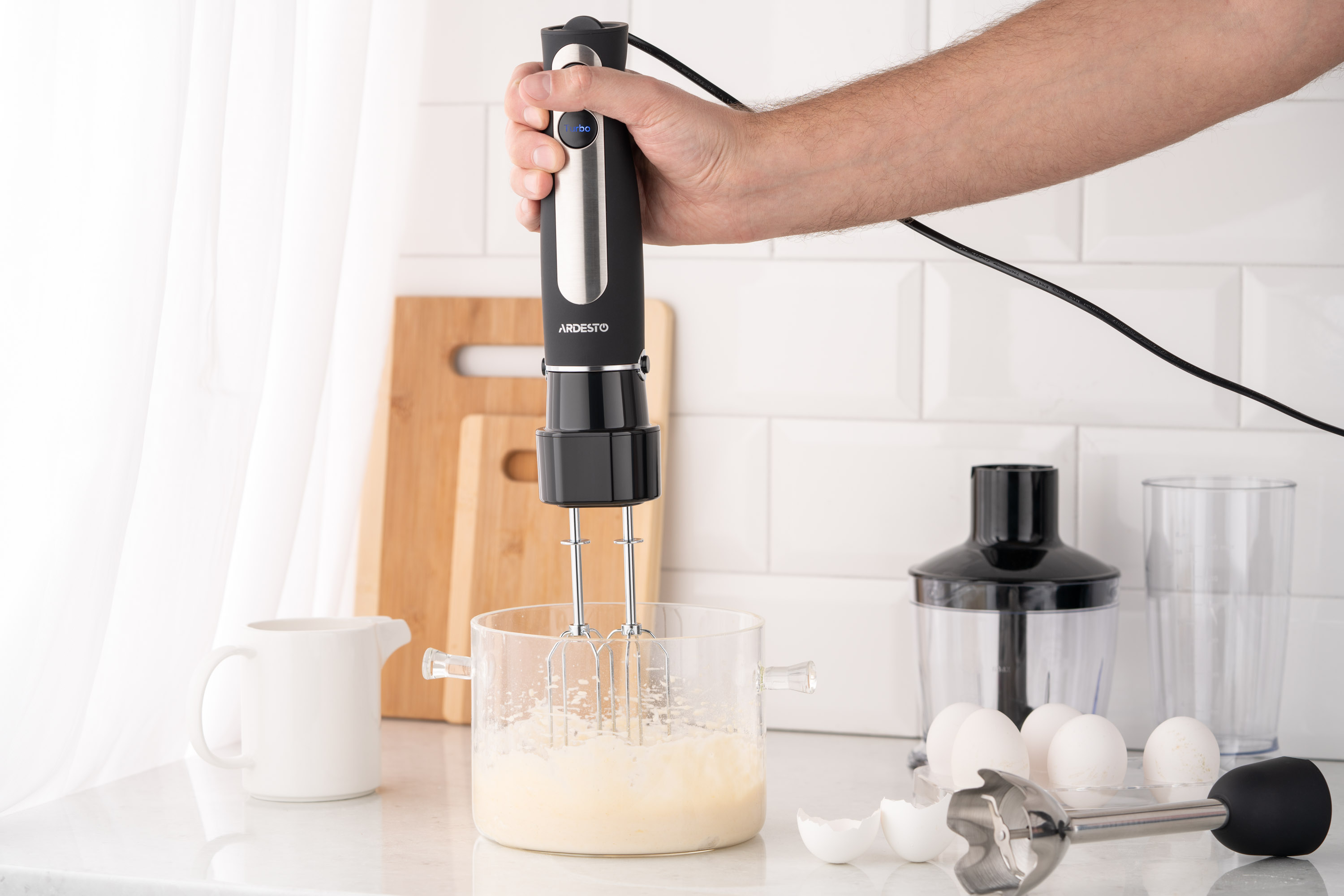 | Насадки | ніжка-блендер, ножі із нержавіючої сталі, вінчик для збивання |