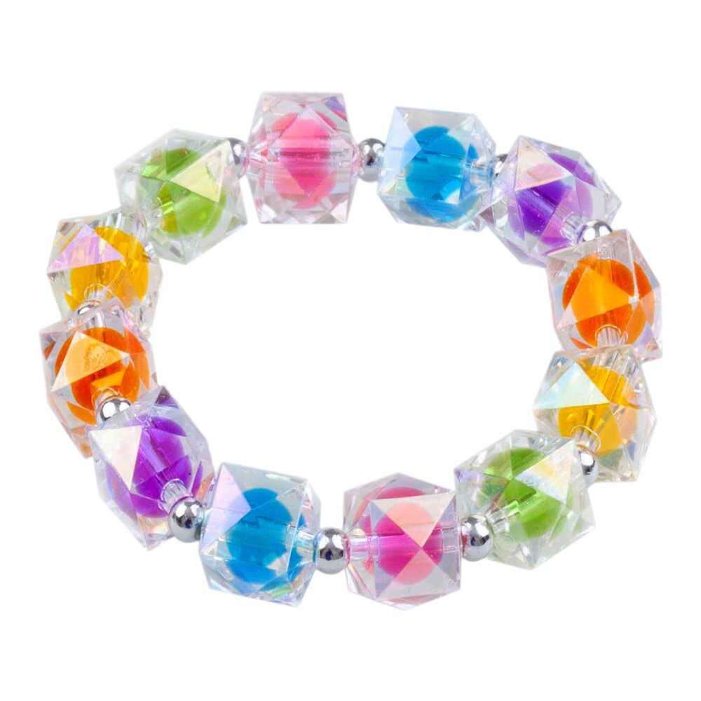 Браслет Great pretenders Fancy square Love affair сподобається юним принцесам! Браслет виготовлено із намистинок різних кольорів у прозорих кристалах та сріблястих намистин, які нанизані на резинку по черзі. Браслет виготовлено з безпечних матеріалів.