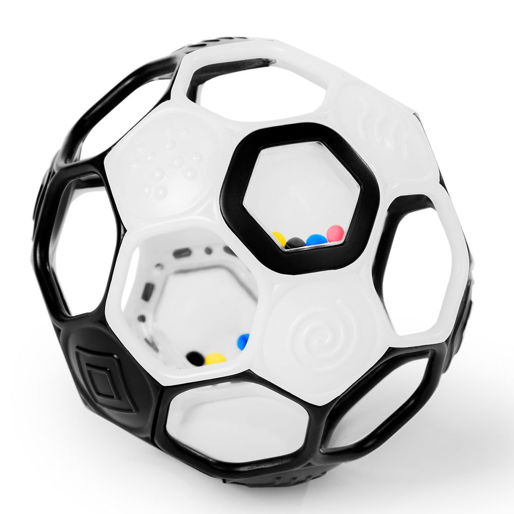 Брязкальце Bright Starts "Grippin’ Goals" у формі футбольного м'ячика з м'якого пластику розвиває мультисенсорне сприйняття, моторику та розуміння причинно-наслідкових зв'язків.
