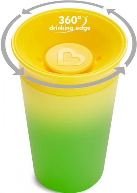 Чашка-непроливайка Munchkin Miracle 360° Color із силіконовою накладкою, допоможе вашому малюку навчитися пити самостійно. Форма чашки без "носика" рекомендована стоматологами як абсолютно безпечна для зубів і сприяє розвитку м'язів рота.